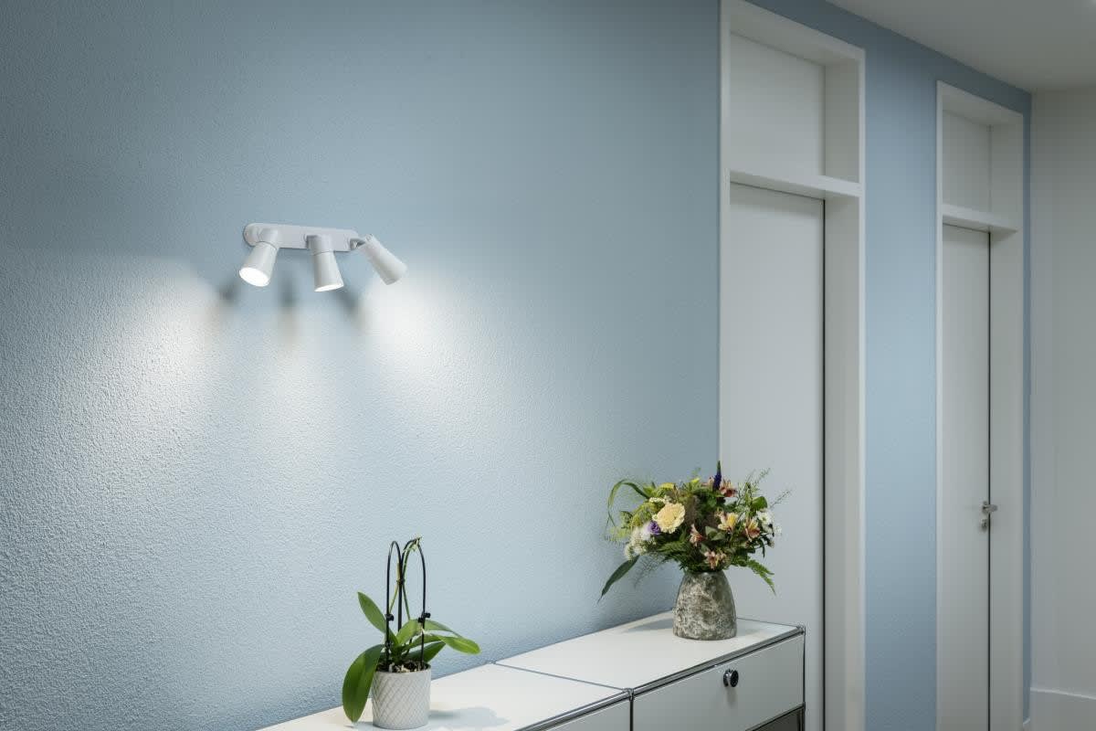Applique, suspension et plafonnier de la gamme PURI pour lequel, selon la version, une à quatre têtes de lampes inclinables et orientables sont montées sur la patère ou le rail. Ce luminaire fabriqué en aluminium peut être utilisé avec des sources LED grâce la douille GU10 intégrée. Il est livré avec un anneau déco à poser sur les sources de 5cm de diamètre. Le raccordement électrique du luminaire disponible en plusieurs coloris, s'effectue directement sur la tension secteur 230V.