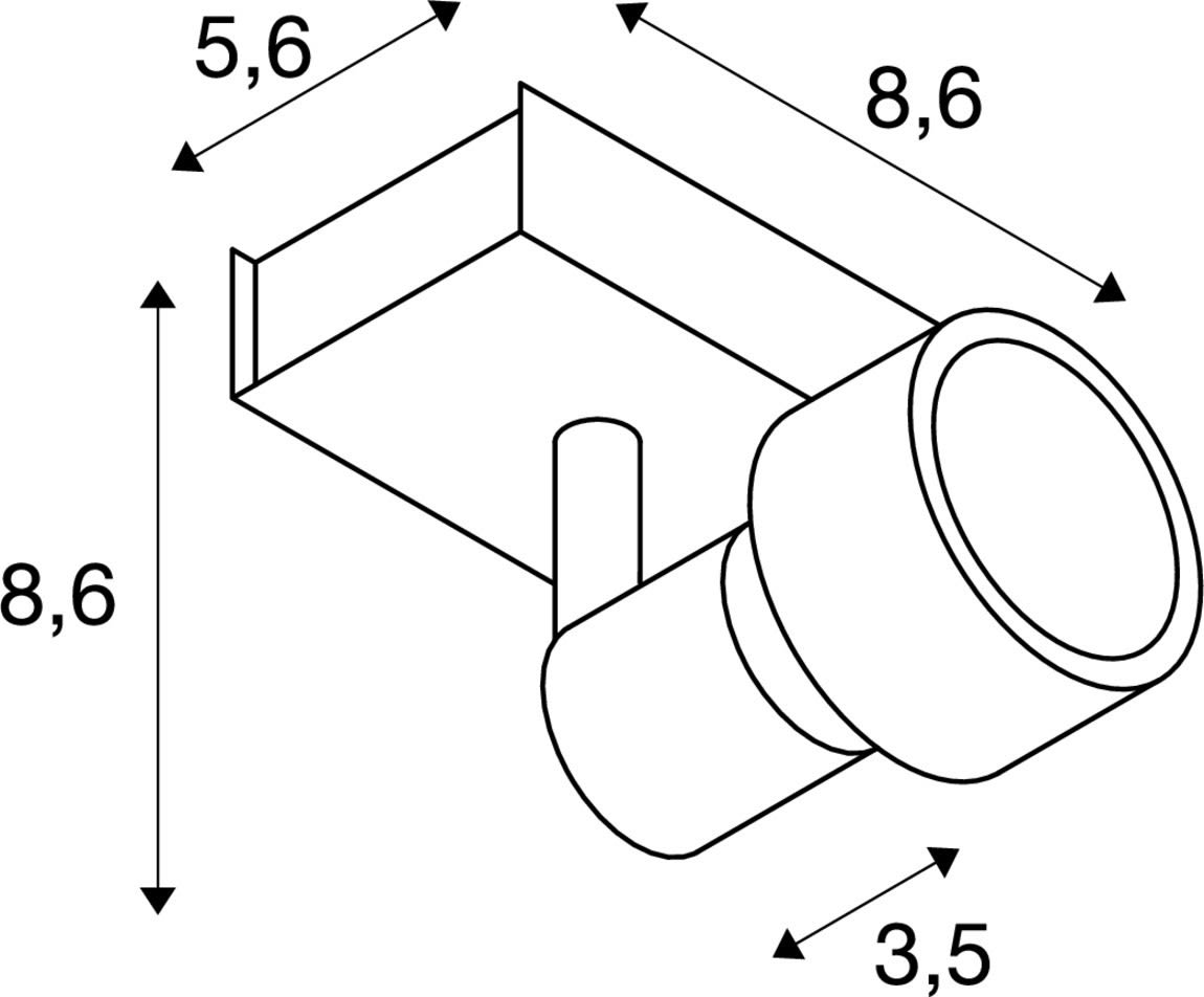 Intérieur applique murale ou de plafond. Matériau principal: Aluminium et Acier, Couleur: blanc, Culot: GU10, Form: rond, Puissance assignée: 50 W, Classe de protection (EN 61140): I, Indice de protection (DIN EN 60529): IP20, donc Protection contre les corps étrangers solides avec un diamètre > 12,5 mm, Tension d'alimentation: 230V ~50Hz, Dimension (L/W/H): ( 8.6 / 5.6 / 8.6 cm ), Poids: 0.283 kg. Le produit répond aux exigences essentielles des directives européennes applicables et de la loi sur la sécurité des produits et porte le marquage CE.SLV Référence 147361 / EAN 4024163144568