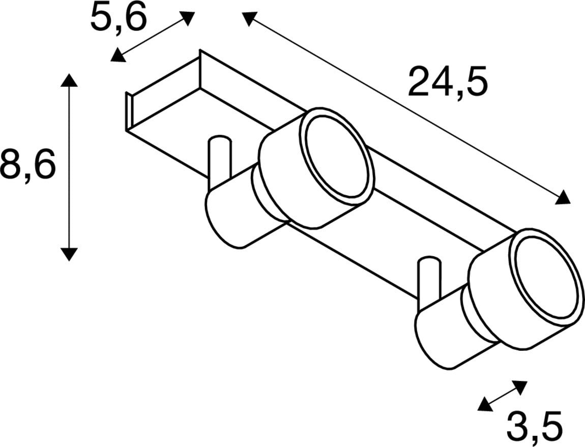 Intérieur applique murale ou de plafond. Matériau principal: Aluminium et Acier, Couleur: blanc, Culot: GU10, Form: rond, Puissance assignée: 50 W, Classe de protection (EN 61140): I, Indice de protection (DIN EN 60529): IP20, donc Protection contre les corps étrangers solides d'un diamètre > 12,5 mm, Tension d'alimentation: 230V ~50Hz, Dimension (L/W/H): ( 24.5 / 5.6 / 8.6 cm ), Poids: 0.62 kg. Le produit répond aux exigences essentielles des directives européennes applicables et de la loi sur la sécurité des produits et porte le marquage CE.SLV Référence 147371 / EAN 4024163144612