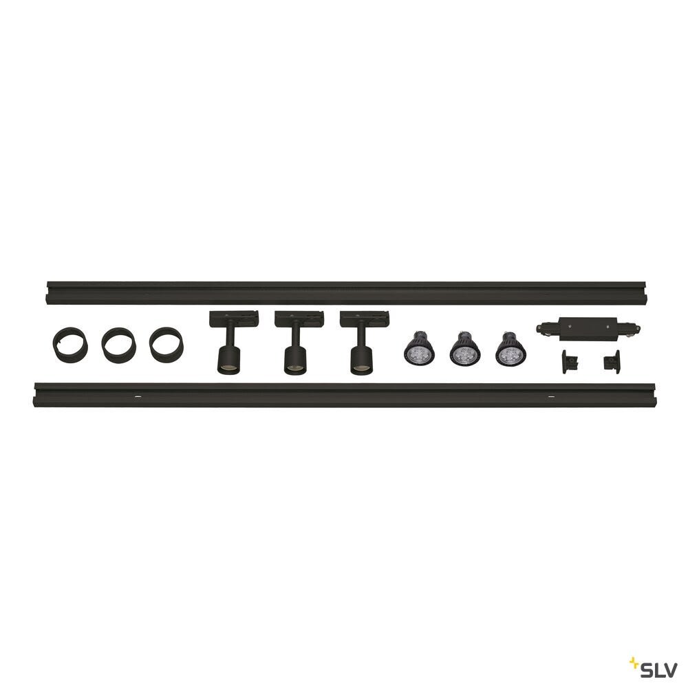 SLV - PURI TRACK Kit 1 allumage, noir, 2x1m, 3x PURI spot et sources LED - 143190