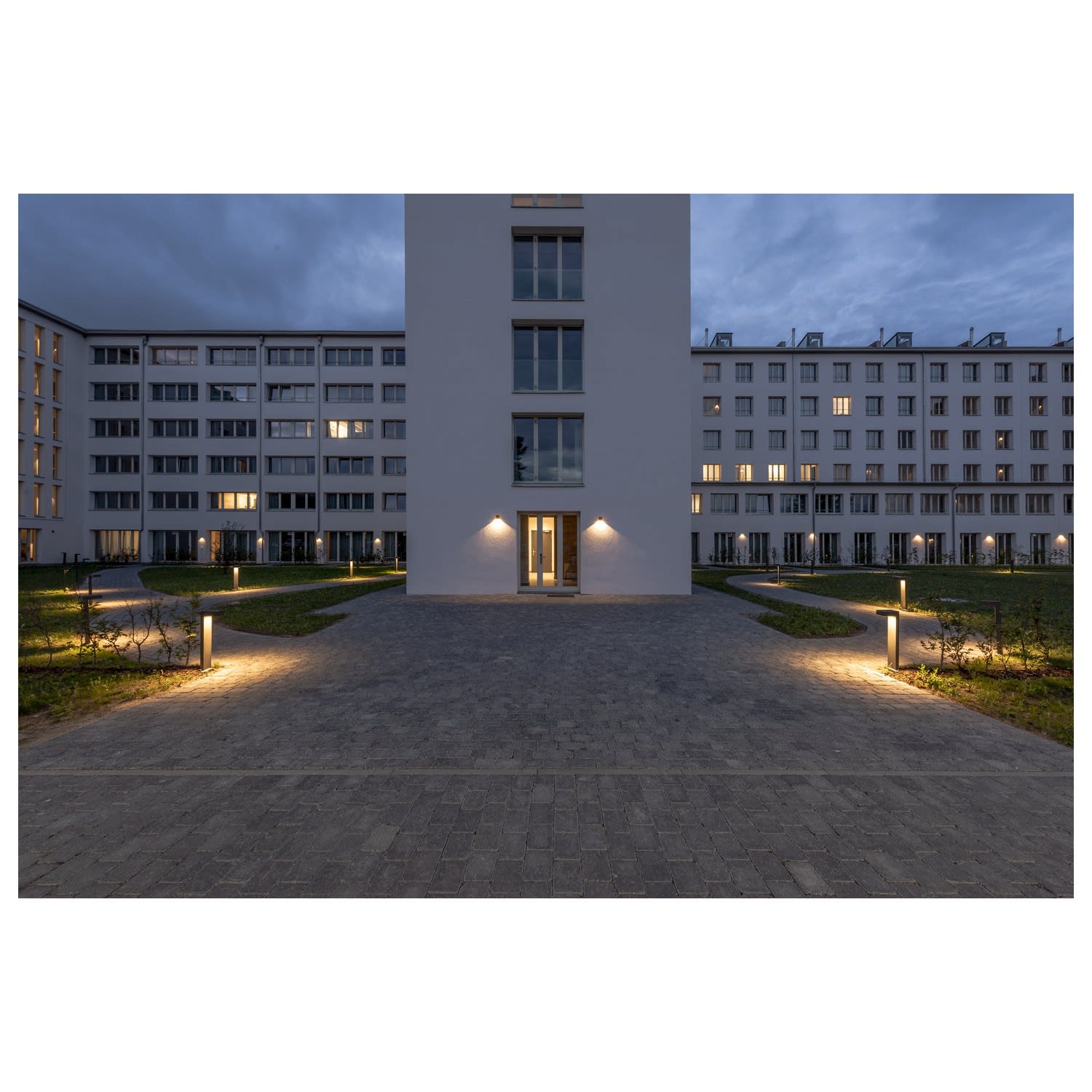 Lampadaire carré QUADRASYL 75 en aluminium peint. Produit convenant à une utilisation en extérieur, grâce à son indice de protection IP44. Le raccordement électrique de ce modèle, disponible en deux coloris, s'effectue directement sur la tension secteur 230 V. Une boîte de connexion est disponible en option, pour un raccordement électrique sûr dans la tige du luminaire. Pour faciliter le montage, le lampadaire est livré avec un kit d'ancrage pour béton. La série QUADRASYL comporte également des appliques murales, pour une utilisation universelle.