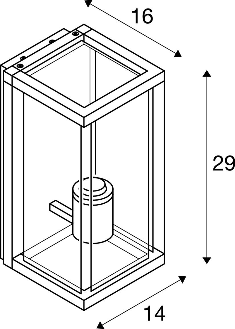 Extérieur appliques. Matériau principal: Aluminium et Verre, Couleur: anthracite, Culot: E27, Form: rectangulaire, Puissance assignée: 15 W, Classe de protection (EN 61140): I, Indice de protection (DIN EN 60529): IP44, donc protection contre les corps étrangers solides > 1mm et protection contre les projections d'eau de toutes directions, Degré de résistance aux chocs selon IEC 62262: IK02, Tension d'alimentation: 230V ~50Hz, Dimension (L/W/H): ( 16 / 14 / 29 cm ), Poids: 2.261 kg. Le produit répond aux exigences essentielles des directives européennes applicables et de la loi sur la sécurité des produits et porte le marquage CE.SLV Référence 1002403 / EAN 4024163226769