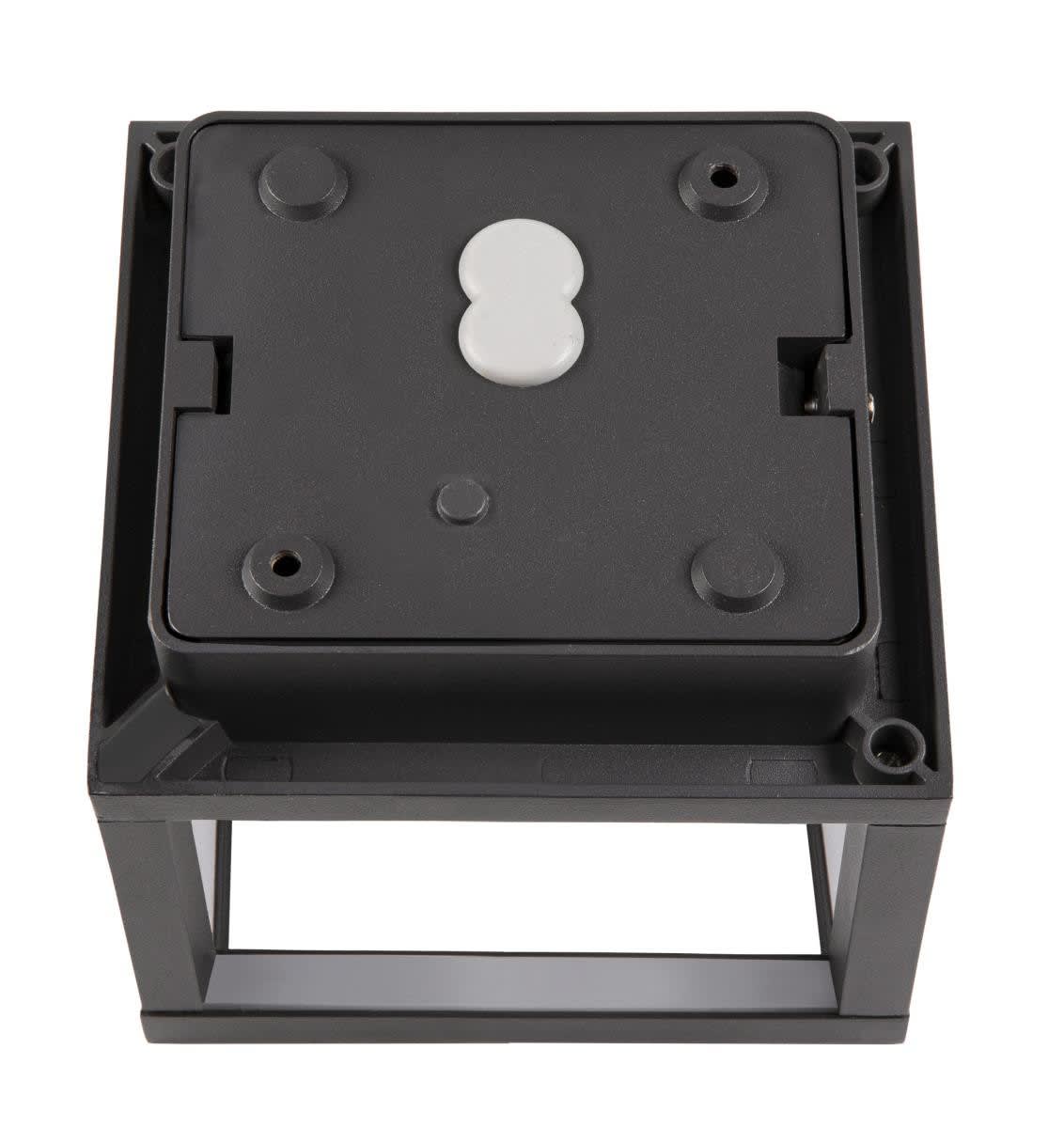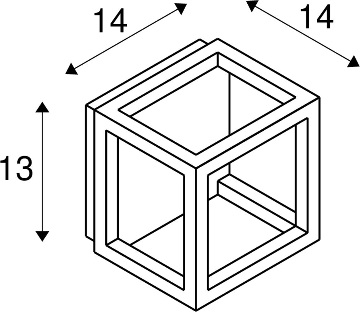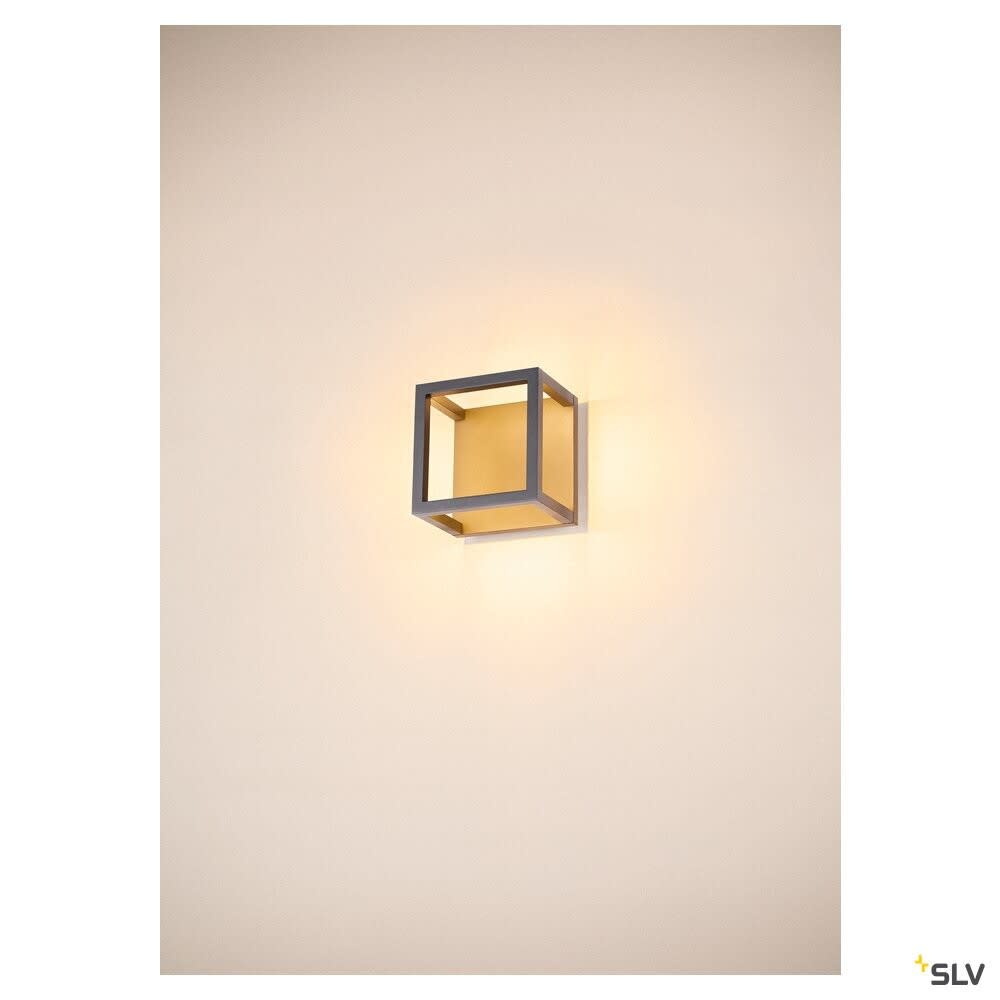 Extérieur applique murale ou de plafond avec corps lumineux LED fixe. Matériau principal: Aluminium et Acrylique, Couleur: anthracite et blanc, Form: rectangulaire, Puissance assignée: 7.5 W, Flux lumineux assigné: 230 lm, Température de couleur (CCT): 3000K, Indice général de rendu des couleurs (IRC) Ra: 80, Maintien du flux lumineux: L70B50 ≥ 30000 h, Classe de protection (EN 61140): I, Indice de protection (DIN EN 60529): IP55, donc Protection contre les interférences causées par les dépôts de poussière et Protection contre les jets d'eau provenant de toutes les directions, Degré de résistance aux chocs selon IEC 62262: IK02, Tension d'alimentation: 100-277V ~50/60 Hz, Dimension (L/W/H): ( 14 / 14 / 13 cm ), Poids: 0.307 kg. Le produit répond aux exigences essentielles des directives européennes applicables et de la loi sur la sécurité des produits et porte le marquage CE.SLV Référence 1005202 / EAN 4024163252850