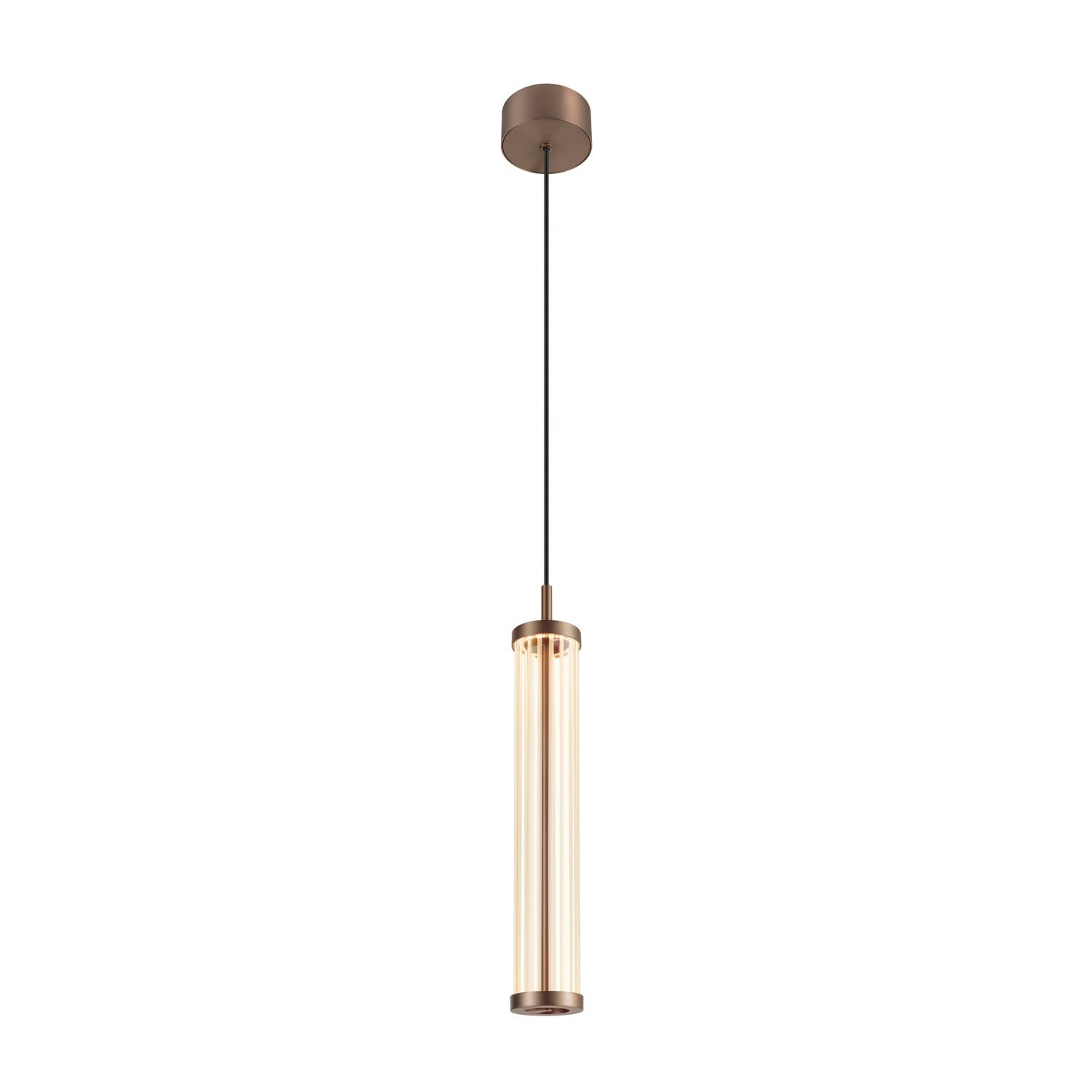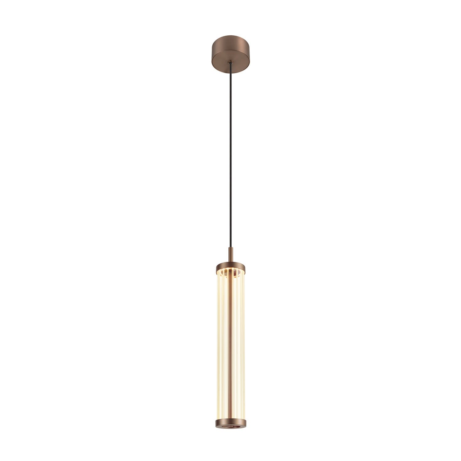 Intérieur suspensions avec corps lumineux LED fixe. Matériau principal: aluminium et verre, Couleur: cuivre foncé, Dimmable: Variateur en fin de phase, Form: cylindrique, Puissance assignée: 8.5 W, Flux lumineux assigné: 330 / 350 lm, Température de couleur (CCT): 2700/3000K, Indice général de rendu des couleurs (IRC) Ra: 90, Maintien du flux lumineux: L80B50 ≥ 50000 h, Classe de protection (EN 61140): I, Indice de protection (DIN EN 60529): IP20, donc protection contre les corps étrangers solides > 12,5mm, Degré de résistance aux chocs selon IEC 62262: IK03, Tension d'alimentation: 220-240V ~50/60 Hz, Diamètre du luminaire: 7.6 cm, Diamètre du baldaquin: 10 cm, Dimension (L/W/H): ( 7.6 / 7.6 / 47 cm ), Poids: 1.45 kg. Le produit répond aux exigences essentielles des directives européennes applicables et de la loi sur la sécurité des produits et porte le marquage CE.SLV Référence 1008034 / EAN 4024163292009