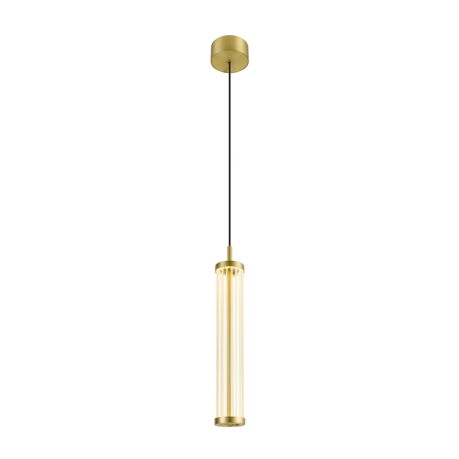 Intérieur suspensions avec corps lumineux LED fixe. Matériau principal: aluminium et verre, Couleur: laiton, Dimmable: Variateur en fin de phase, Form: cylindrique, Puissance assignée: 8.5 W, Flux lumineux assigné: 330 / 350 lm, Température de couleur (CCT): 2700/3000K, Indice général de rendu des couleurs (IRC) Ra: 90, Maintien du flux lumineux: L80B50 ≥ 50000 h, Classe de protection (EN 61140): I, Indice de protection (DIN EN 60529): IP20, donc protection contre les corps étrangers solides > 12,5mm, Degré de résistance aux chocs selon IEC 62262: IK03, Tension d'alimentation: 220-240V ~50/60 Hz, Diamètre du luminaire: 7.6 cm, Diamètre du baldaquin: 10 cm, Dimension (L/W/H): ( 7.6 / 7.6 / 47 cm ), Poids: 1.45 kg. Le produit répond aux exigences essentielles des directives européennes applicables et de la loi sur la sécurité des produits et porte le marquage CE.SLV Référence 1008033 / EAN 4024163292016