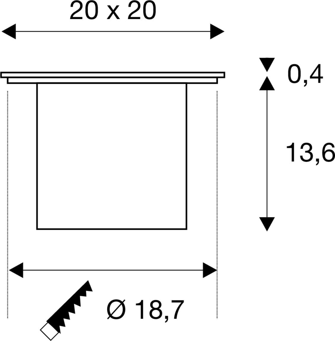 Extérieur encastré de sol avec corps lumineux LED fixe. Matériau principal: Inox, Couleur: inox, Form: rectangulaire, Puissance assignée: 16 W, Flux lumineux assigné: 1530 lm, Température de couleur (CCT): 3000K, Indice général de rendu des couleurs (IRC) Ra: 80, Maintien du flux lumineux: L70B50 ≥ 30000 h, Classe de protection (EN 61140): I, Indice de protection (DIN EN 60529): IP65/IP67, Degré de résistance aux chocs selon IEC 62262: IK08, Tension d'alimentation: 100-277V ~50/60 Hz, Diamètre de la découpe: 18.7 cm, Dimension (L/W/H): ( 20 / 20 / 14 cm ), Poids: 2.22 kg. Le produit répond aux exigences essentielles des directives européennes applicables et de la loi sur la sécurité des produits et porte le marquage CE.SLV Référence 1006105 / EAN 4024163262088