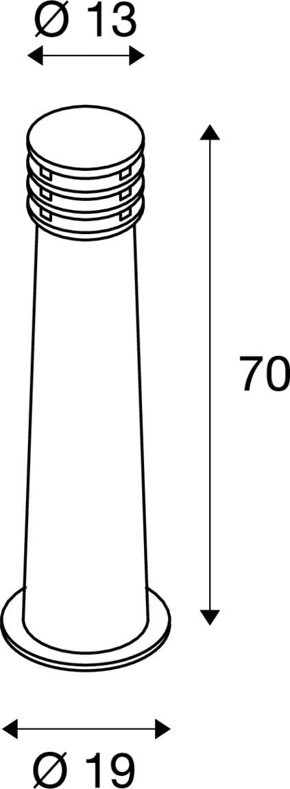Extérieur lampadaires. Matériau principal: Acier FeCSi et polycarbonate (PC), Couleur: rouille, Culot: E27, Form: rond, Puissance assignée: 11 W, Classe de protection (EN 61140): II, Indice de protection (DIN EN 60529): IP55, donc Protection contre les interférences causées par les dépôts de poussière et Protection contre les jets d'eau provenant de toutes les directions, Degré de résistance aux chocs selon IEC 62262: IK02, Tension d'alimentation: 230V ~50Hz, Diamètre du luminaire: 19 cm, Dimension (L/W/H): ( 19 / 19 / 70 cm ), Poids: 13.708 kg. Le produit répond aux exigences essentielles des directives européennes applicables et de la loi sur la sécurité des produits et porte le marquage CE.SLV Référence 229021 / EAN 4024163090162