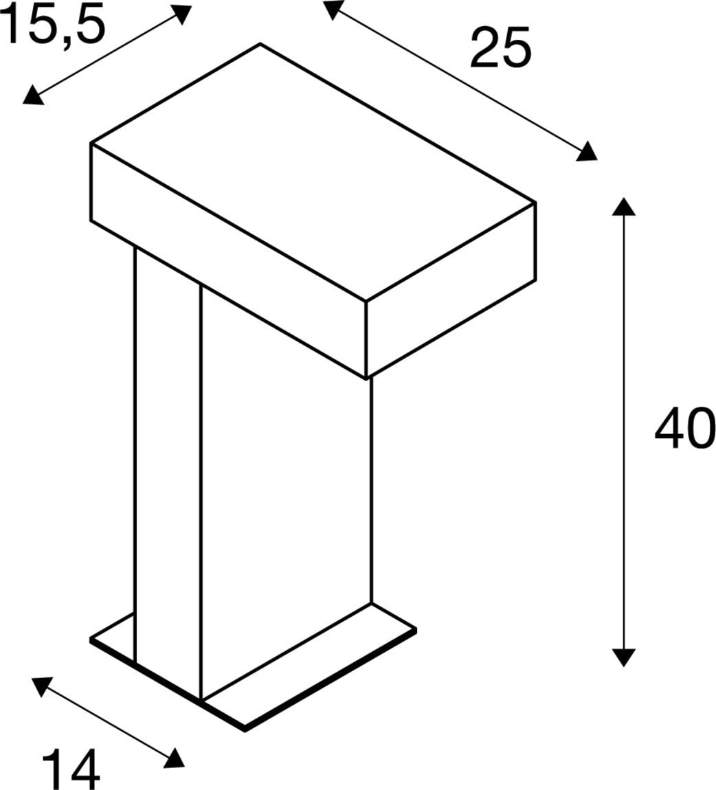 Extérieur lampadaires. Matériau principal: Acier FeCSi et polycarbonate (PC), Couleur: rouille, Culot: GX53, Form: rectangulaire, Puissance assignée: 9 W, Classe de protection (EN 61140): I, Indice de protection (DIN EN 60529): IP44, donc protection contre les corps étrangers solides > 1mm et protection contre les projections d'eau de toutes directions, Tension d'alimentation: 230V ~50Hz, Dimension (L/W/H): ( 15.5 / 25 / 40 cm ), Poids: 11.208 kg. Le produit répond aux exigences essentielles des directives européennes applicables et de la loi sur la sécurité des produits et porte le marquage CE.SLV Référence 230090 / EAN 4024163124683