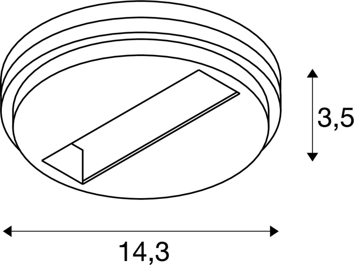 Point de sortie. Matériau principal: polycarbonate (PC), Couleur: noir, Classe de protection (EN 61140): TBD, Indice de protection (DIN EN 60529): IP20, donc Protection contre les corps étrangers solides d'un diamètre supérieur à 12,5 mm, Diamètre du luminaire: 14.3 cm, Dimension (L/W/H): ( 14.3 / 14.3 / 3.5 cm ), Poids: 0.199 kg. Le produit répond aux exigences essentielles des directives européennes applicables et de la loi sur la sécurité des produits et porte le marquage CE.SLV Référence 1004684 / EAN 4024163248341
