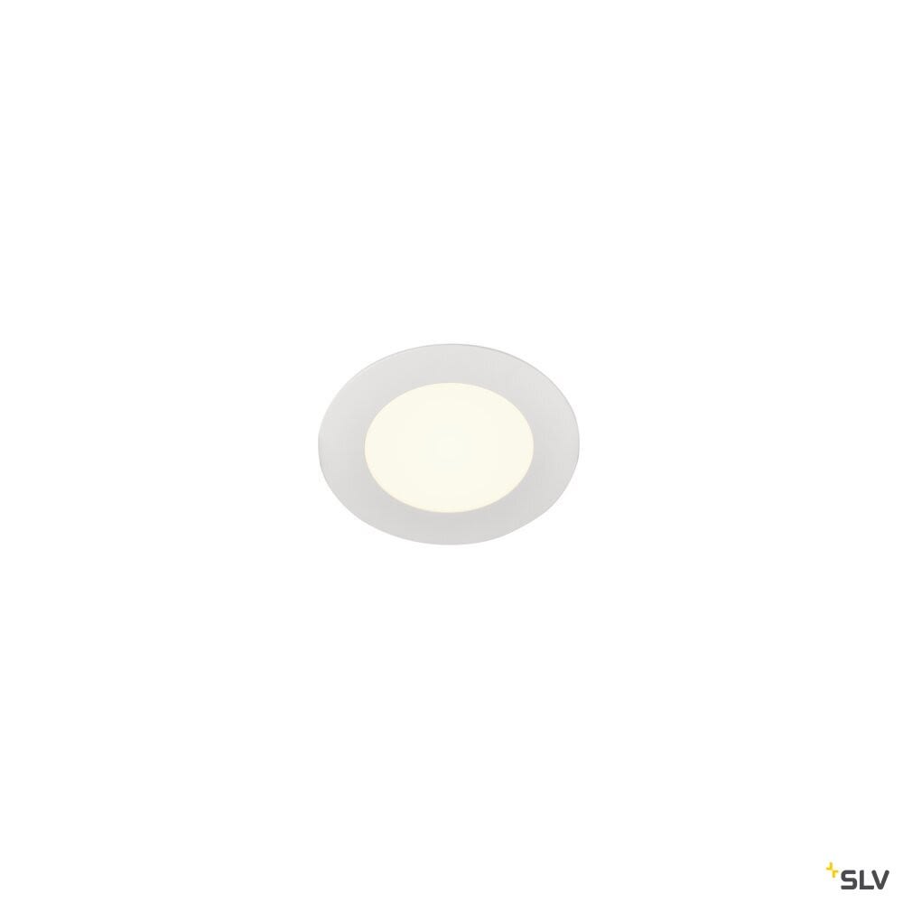 Intérieur plafonnier encastré avec corps lumineux LED fixe. Matériau principal: Aluminium, Couleur: blanc, Form: rond, Puissance assignée: 6 W, Flux lumineux assigné: 470 lm, Température de couleur (CCT): 4000K, Indice général de rendu des couleurs (IRC) Ra: 90, Maintien du flux lumineux: L70B50 ≥ 50000 h, Classe de protection (EN 61140): III, Indice de protection (DIN EN 60529): IP20, donc Protection contre les corps étrangers solides d'un diamètre supérieur à 12,5 mm, Diamètre du luminaire: 11.5 cm, Diamètre de la découpe: 10.5 cm, Dimension (L/W/H): ( 11.5 / 11.5 / 2 cm ), Poids: 0.108 kg. Le produit répond aux exigences essentielles des directives européennes applicables et de la loi sur la sécurité des produits et porte le marquage CE.SLV Référence 1004694 / EAN 4024163248440