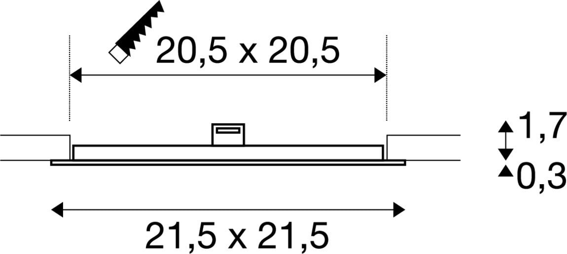 Intérieur plafonnier encastré avec corps lumineux LED fixe. Matériau principal: Aluminium, Couleur: blanc, Form: rectangulaire, Puissance assignée: 13 W, Flux lumineux assigné: 1240 lm, Température de couleur (CCT): 4000K, Indice général de rendu des couleurs (IRC) Ra: 90, Maintien du flux lumineux: L70B50 ≥ 50000 h, Classe de protection (EN 61140): III, Indice de protection (DIN EN 60529): IP20, donc Protection contre les corps étrangers solides d'un diamètre supérieur à 12,5 mm, Dimension (L/W/H): ( 21.5 / 21.5 / 2 cm ), Poids: 0.36 kg. Le produit répond aux exigences essentielles des directives européennes applicables et de la loi sur la sécurité des produits et porte le marquage CE.SLV Référence 1004699 / EAN 4024163248495