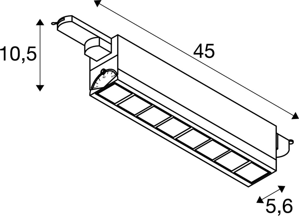 Intérieur 3~ Spot avec corps lumineux LED fixe pour le Système de rail 3 allumages. Matériau principal: Aluminium et Acrylate de polyméthyle (PMMA), Couleur: noir, Dimmable: DALI, Form: rectangulaire, Puissance assignée: 26 W, Flux lumineux assigné: 2700 lm, Température de couleur (CCT): 3000K, Indice général de rendu des couleurs (IRC) Ra: 90, Maintien du flux lumineux: L70B50 ≥ 30000 h, Classe de protection (EN 61140): I, Indice de protection (DIN EN 60529): IP20, donc Protégé contre les corps solides > 12,5mm, Tension d'alimentation: 220-240V ~50/60 Hz, Dimension (L/W/H): ( 45 / 5.6 / 10.5 cm ), Poids: 1.238 kg. Le produit répond aux exigences essentielles des directives européennes applicables et de la loi sur la sécurité des produits et porte le marquage CE.SLV Référence 1004690 / EAN 4024163248402