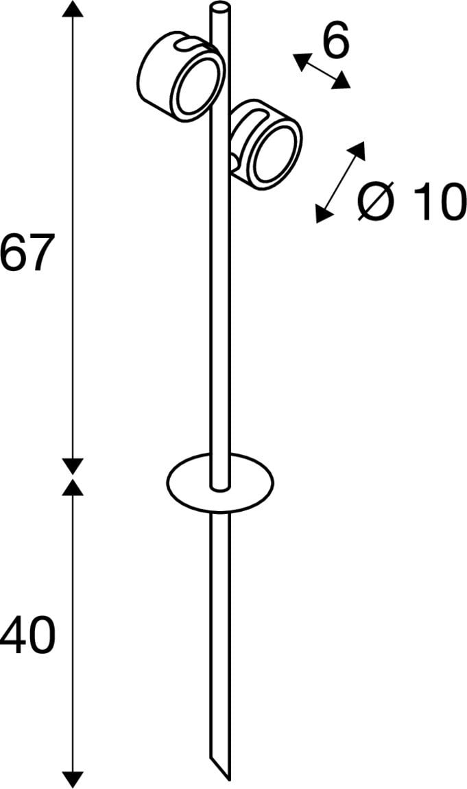 Extérieur spots à piquer. Matériau principal: Aluminium et Verre, Couleur: anthracite, Culot: GX53, Form: autre, Puissance assignée: 9 W, Classe de protection (EN 61140): I, Indice de protection (DIN EN 60529): IP44, donc protection contre les corps étrangers solides > 1mm et protection contre les projections d'eau de toutes directions, Degré de résistance aux chocs selon IEC 62262: IK04, Tension d'alimentation: 230V ~50Hz, Dimension (L/W/H): ( 28 / 11.6 / 67 cm ), Poids: 1.839 kg. Le produit répond aux exigences essentielles des directives européennes applicables et de la loi sur la sécurité des produits et porte le marquage CE.SLV Référence 231535 / EAN 4024163134460