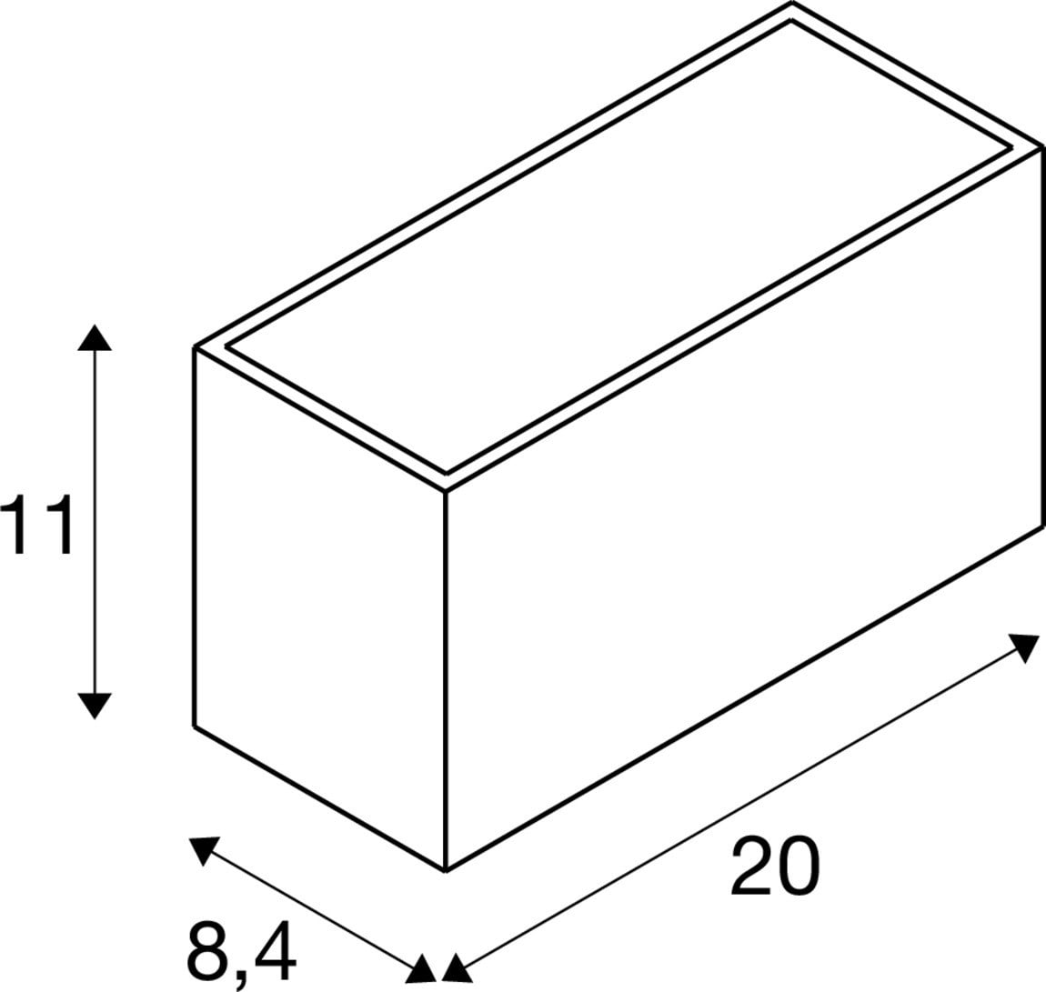 Extérieur appliques avec corps lumineux LED fixe. Matériau principal: Aluminium et Verre, Couleur: anthracite, Form: rectangulaire, Puissance assignée: 14 W, Flux lumineux assigné: 1700 / 1880 lm, Température de couleur (CCT): 3000/4000K, Indice général de rendu des couleurs (IRC) Ra: 80, Maintien du flux lumineux: L70B50 ≥ 50000 h, Classe de protection (EN 61140): I, Indice de protection (DIN EN 60529): IP65, donc protection contre les corps étrangers solides > 1mm et protection contre les projections d'eau de toutes directions, Degré de résistance aux chocs selon IEC 62262: IK05, Tension d'alimentation: 220-240V ~50/60 Hz, Dimension (L/W/H): ( 8.4 / 20 / 11 cm ), Poids: 1.267 kg. Le produit répond aux exigences essentielles des directives européennes applicables et de la loi sur la sécurité des produits et porte le marquage CE.SLV Référence 1005151 / EAN 4024163252485