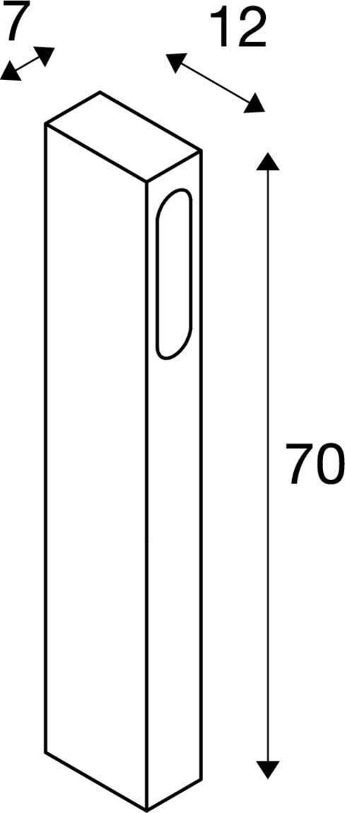 Extérieur lampadaires avec corps lumineux LED fixe. Matériau principal: Aluminium, Couleur: anthracite, Form: rectangulaire, Puissance assignée: 8.7 W, Flux lumineux assigné: 160 lm, Température de couleur (CCT): 3000K, Maintien du flux lumineux: L70B50 ≥ 35000 h, Classe de protection (EN 61140): II, Indice de protection (DIN EN 60529): IP44, donc protection contre les corps étrangers solides > 1mm et protection contre les projections d'eau de toutes directions, Degré de résistance aux chocs selon IEC 62262: IK04, Tension d'alimentation: 200-240V ~50/60Hz sek. 700mA, Dimension (L/W/H): ( 7 / 12 / 70 cm ), Poids: 2.254 kg. Le produit répond aux exigences essentielles des directives européennes applicables et de la loi sur la sécurité des produits et porte le marquage CE.SLV Référence 232145 / EAN 4024163140478