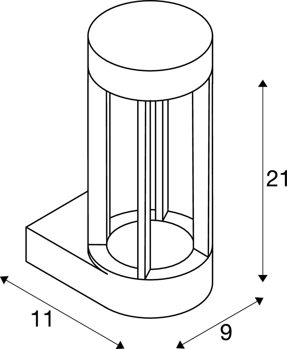 Extérieur appliques avec corps lumineux LED fixe. Matériau principal: Aluminium et Verre, Couleur: rouille, Form: cylindrique, Puissance assignée: 4.5 W, Flux lumineux assigné: 140 lm, Température de couleur (CCT): 3000K, Classe de protection (EN 61140): I, Indice de protection (DIN EN 60529): IP44, donc protection contre les corps étrangers solides > 1mm et protection contre les projections d'eau de toutes directions, Tension d'alimentation: 220-240V ~50/60Hz, Diamètre du luminaire: 9 cm, Dimension (L/W/H): ( 11 / 9 / 21 cm ), Poids: 0.872 kg. Le produit répond aux exigences essentielles des directives européennes applicables et de la loi sur la sécurité des produits et porte le marquage CE.SLV Référence 231807 / EAN 4024163150873