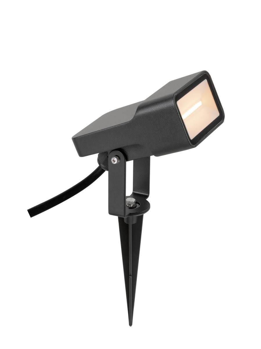 SYNAWIDE, projecteur extérieur, spot sur piquet, carré, noir, LED, 5,5W, 2200K, 500lm, IP65, bord de mer, IK06, câble 150cm avec fiche IP44, prêt à brancher