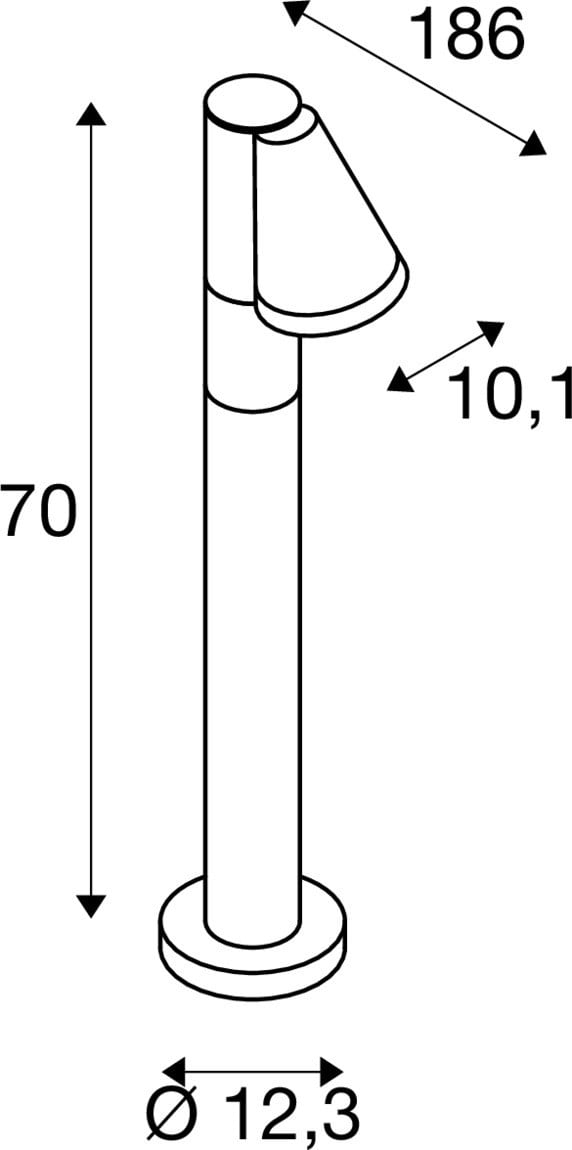 Extérieur lampadaires. Matériau principal: aluminium, Couleur: noir, Culot: GU10, Puissance assignée: 10 W, Classe de protection (EN 61140): I, Indice de protection (DIN EN 60529): IP65, Degré de résistance aux chocs selon IEC 62262: IK06, Tension d'alimentation: 220-240V ~50/60 Hz, Dimension (L/W/H): ( 18.6 / 12 / 70 cm ), Poids: 1.48 kg. Le produit répond aux exigences essentielles des directives européennes applicables et de la loi sur la sécurité des produits et porte le marquage CE.SLV Référence 1008016 / EAN 4024163291576