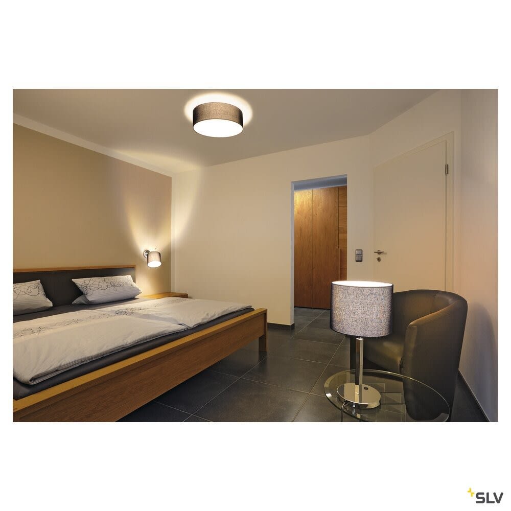 Intérieur plafonniers. Matériau principal: Acier et Textile, Couleur: blanc, Culot: E27, Form: rond, Puissance assignée: 23 W, Classe de protection (EN 61140): I, Indice de protection (DIN EN 60529): IP20, donc Protection contre les corps étrangers solides d'un diamètre > 12,5 mm, Tension d'alimentation: 230V ~50Hz, Diamètre du luminaire: 50 cm, Dimension (L/W/H): ( 50 / 50 / 17 cm ), Poids: 1.392 kg. Le produit répond aux exigences essentielles des directives européennes applicables et de la loi sur la sécurité des produits et porte le marquage CE.SLV Référence 156051 / EAN 4024163148276