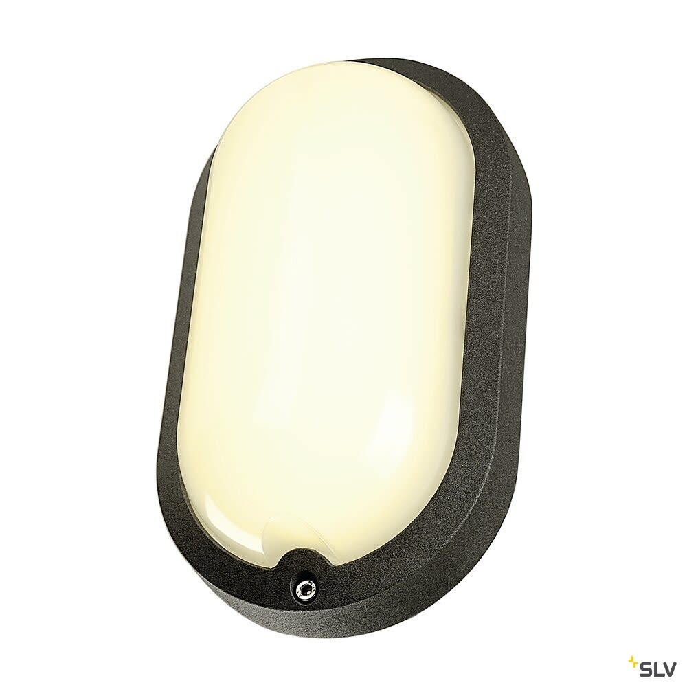 Extérieur applique murale ou de plafond avec corps lumineux LED fixe. Matériau principal: Aluminium et polycarbonate (PC), Couleur: anthracite, Form: ovale, Puissance assignée: 11 W, Flux lumineux assigné: 830 lm, Température de couleur (CCT): 3000K, Indice général de rendu des couleurs (IRC) Ra: 80, Maintien du flux lumineux: L70B50 ≥ 20000 h, Classe de protection (EN 61140): I, Indice de protection (DIN EN 60529): IP44, donc protection contre les corps étrangers solides > 1mm et protection contre les projections d'eau de toutes directions, Degré de résistance aux chocs selon IEC 62262: IK03, Tension d'alimentation: 220-240V ~50Hz, Dimension (L/W/H): ( 7.5 / 19.8 / 11 cm ), Poids: 0.451 kg. Le produit répond aux exigences essentielles des directives européennes applicables et de la loi sur la sécurité des produits et porte le marquage CE.SLV Référence 229935 / EAN 4024163147989