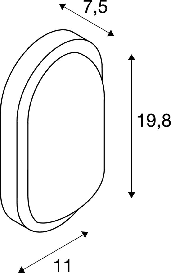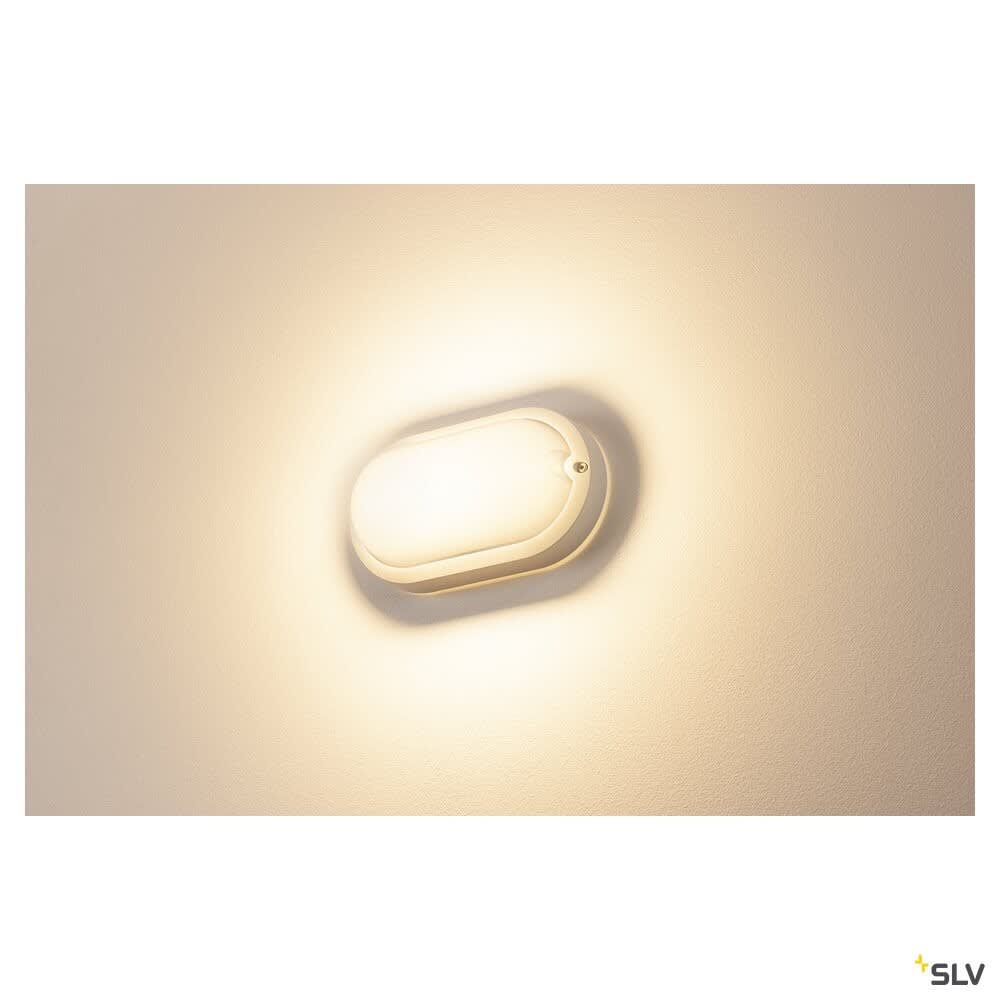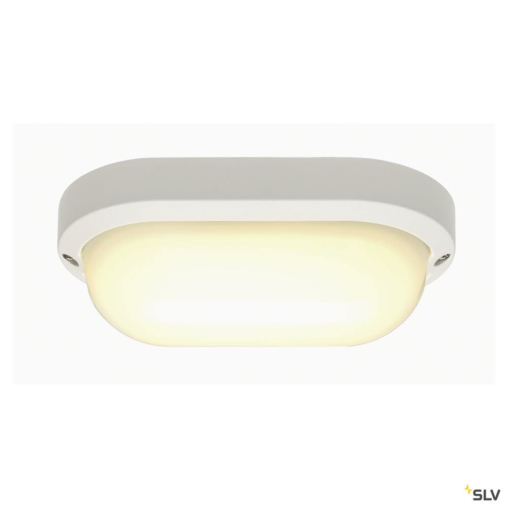 Extérieur applique murale ou de plafond avec corps lumineux LED fixe. Matériau principal: Aluminium et polycarbonate (PC), Couleur: blanc, Form: ovale, Puissance assignée: 11 W, Flux lumineux assigné: 830 lm, Température de couleur (CCT): 3000K, Indice général de rendu des couleurs (IRC) Ra: 80, Maintien du flux lumineux: L70B50 ≥ 20000 h, Classe de protection (EN 61140): I, Indice de protection (DIN EN 60529): IP44, donc protection contre les corps étrangers solides > 1mm et protection contre les projections d'eau de toutes directions, Degré de résistance aux chocs selon IEC 62262: IK03, Tension d'alimentation: 220-240V ~50Hz, Dimension (L/W/H): ( 7.5 / 19.8 / 11 cm ), Poids: 0.457 kg. Le produit répond aux exigences essentielles des directives européennes applicables et de la loi sur la sécurité des produits et porte le marquage CE.SLV Référence 229931 / EAN 4024163147965
