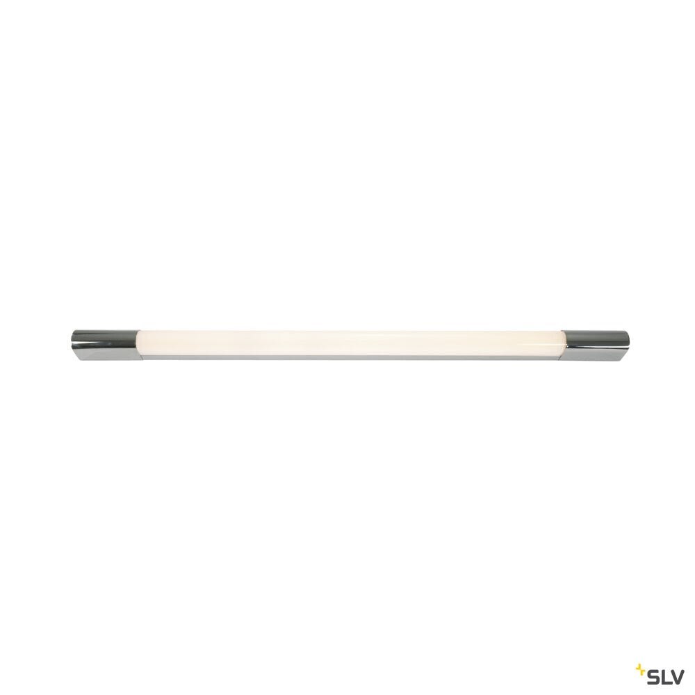 Intérieur appliques avec corps lumineux LED fixe. Matériau principal: Acier et plastique, Couleur: chrome et dépoli, Form: cylindrique, Puissance assignée: 12 W, Flux lumineux assigné: 1040 lm, Température de couleur (CCT): 3000K, Indice général de rendu des couleurs (IRC) Ra: 90, Maintien du flux lumineux: L70B50 ≥ 50000 h, Classe de protection (EN 61140): I, Indice de protection (DIN EN 60529): IP44, donc protection contre les corps étrangers solides > 1mm et protection contre les projections d'eau de toutes directions, Degré de résistance aux chocs selon IEC 62262: IK03, Tension d'alimentation: 100-240V ~50/60Hz sek. 500mA, Dimension (L/W/H): ( 90 / 4 / 5 cm ), Poids: 0.899 kg. Le produit répond aux exigences essentielles des directives européennes applicables et de la loi sur la sécurité des produits et porte le marquage CE.SLV Référence 149772 / EAN 4024163156240