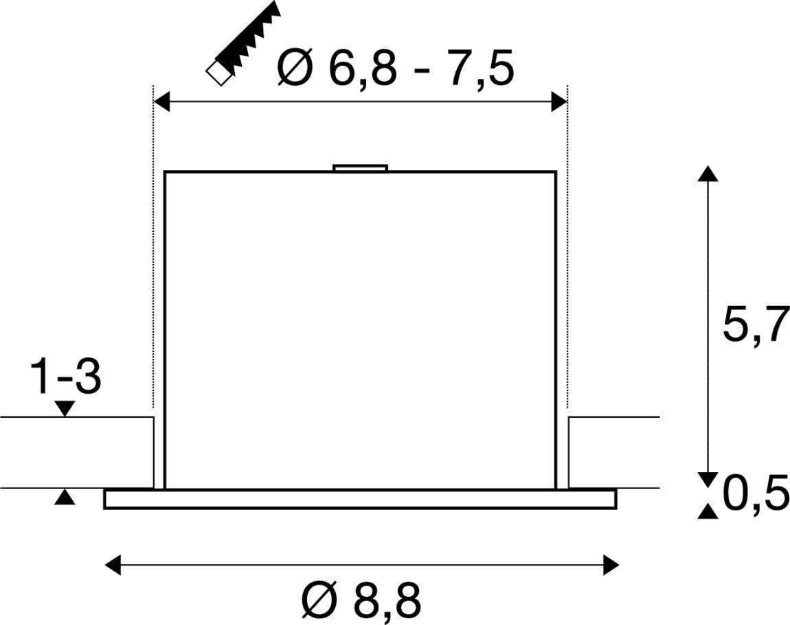 Intérieur plafonnier encastré avec corps lumineux LED fixe. Matériau principal: acier et matière plastique PC, Couleur: blanc, Dimmable: Variateur en fin de phase, Form: rond, Puissance assignée: 5 W, Flux lumineux assigné: 670 / 680 / 690 / 680 lm, Température de couleur (CCT): 2700/3000/4000/6500K, Indice général de rendu des couleurs (IRC) Ra: 90, Maintien du flux lumineux: L80B50 ≥ 50000 h, Classe de protection (EN 61140): II, Indice de protection (DIN EN 60529): IP20/IP65, Degré de résistance aux chocs selon IEC 62262: IK02, Tension d'alimentation: 220-240V ~50/60 Hz, Diamètre du luminaire: 8.8 cm, Diamètre de la découpe: 6.8 cm, Dimension (L/W/H): ( 8.8 / 8.8 / 6.2 cm ), Poids: 0.274 kg.SLV Référence 1011208 / EAN 4024163327664
