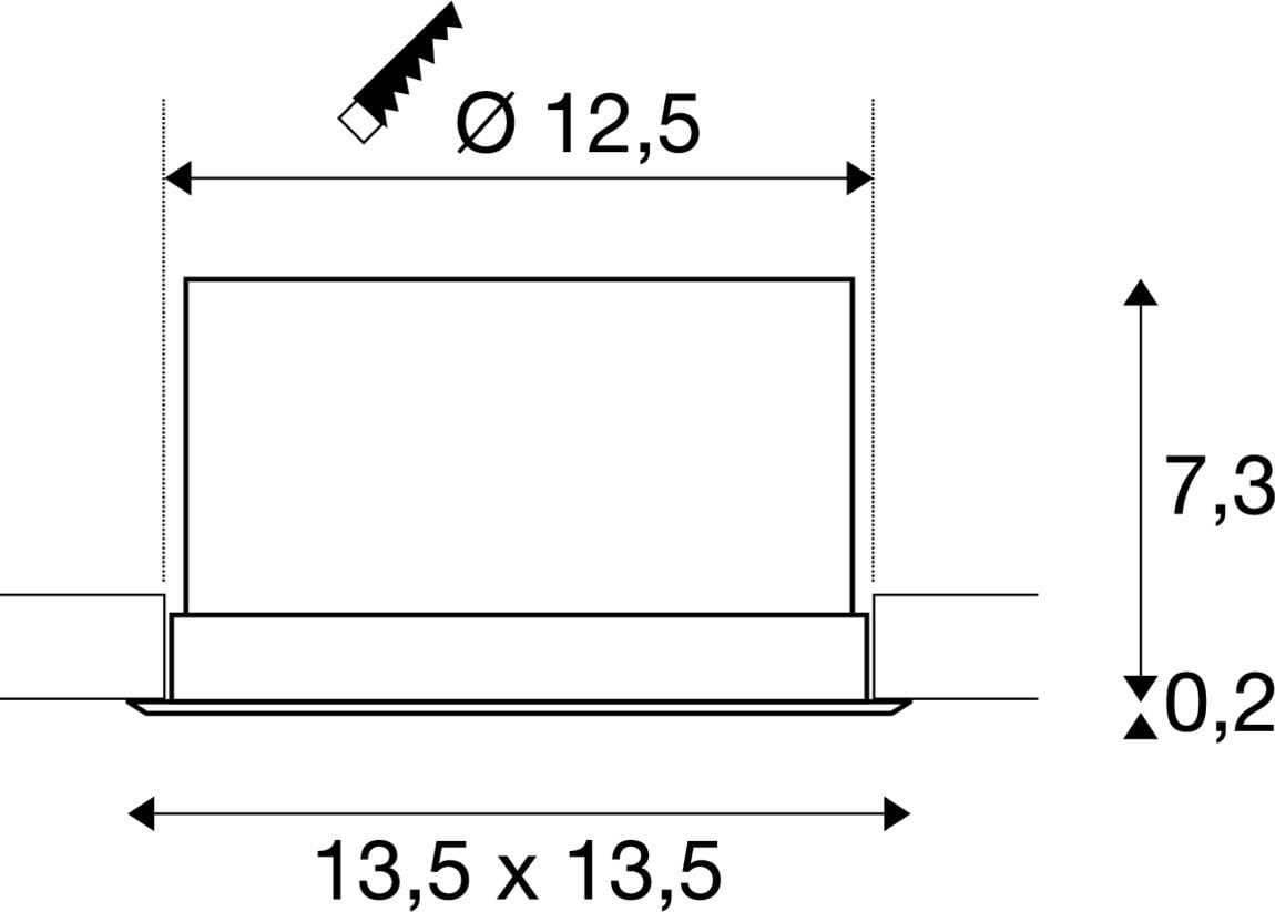 Intérieur encastré mural ou de plafond avec corps lumineux LED fixe. Matériau principal: Aluminium et plastique, Couleur: blanc, Dimmable: Variateur en fin de phase, Form: rectangulaire, Puissance assignée: 22 W, Flux lumineux assigné: 1800 lm, Température de couleur (CCT): 3000K, Maintien du flux lumineux: L70B50 ≥ 35000 h, Classe de protection (EN 61140): II, Indice de protection (DIN EN 60529): IP20, donc Protection contre les corps étrangers solides d'un diamètre > 12,5 mm, Degré de résistance aux chocs selon IEC 62262: IK02, Tension d'alimentation: 220-240V ~50/60Hz sek. 500mA, Diamètre de la découpe: 12.5 cm, Dimension (L/W/H): ( 13.5 / 13.5 / 7.5 cm ), Poids: 0.339 kg. Le produit répond aux exigences essentielles des directives européennes applicables et de la loi sur la sécurité des produits et porte le marquage CE.SLV Référence 112692 / EAN 4024163164313