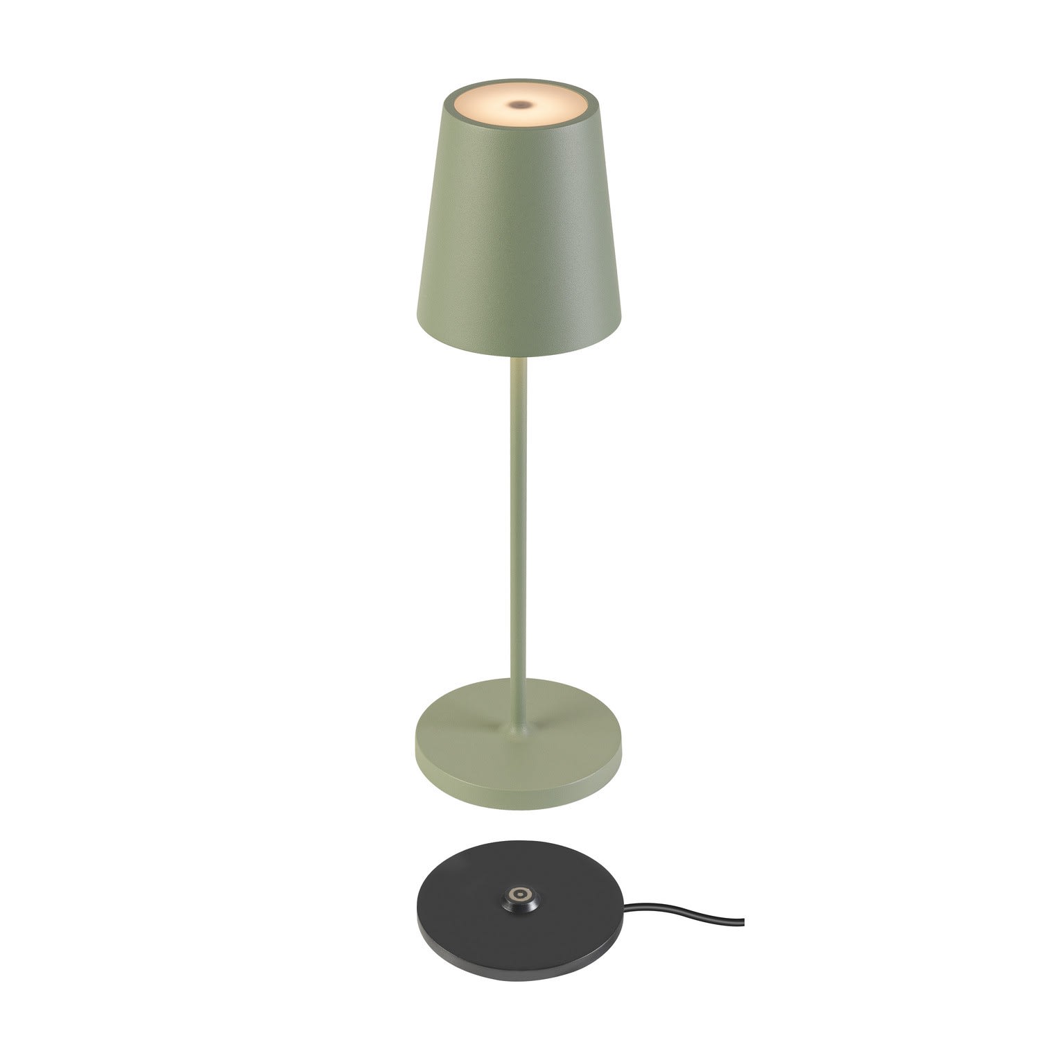 La gamme VINOLINA propose un large choix coloris et de forme pour notre lampe à poser en aluminium. Vous pouvez l'emporter de partout avec vous, son indice de protection IP65 permet également d'emporter à l'extérieur. Dotée d'un design intemporel, une seule charge de sa batterie vous apporte 10 heures d'une lumière dirigée vers le haut et le bas, dont vous pouvez régler la température de couleur via un interrupteur CCT (2200/2700/3000 K). La station de rechargement est fournie à la livraison avec un câble USB. Avec VINOLINA, découvrez une solution d'éclairage élégante, à l'intensité lumineuse variable par interrupteur tactile.