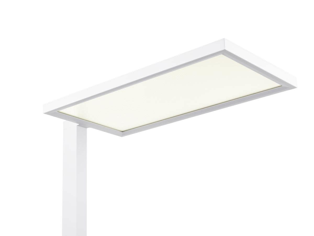 WORKLIGHT EASY - une solution d'éclairage simple pour les postes de travail des bureaux modernes. Grâce à sa lumière qui n'éblouit pas (UGR < à 19), son efficacité lumineuse de 119 lm/W, son IRC (Indice de Rendu des Couleurs) > à 90 et sa durée de vie de 50 000 h (L80B10), elle répond à toutes les exigences en matière d'ergonomie au travail. Avec son bouton rotatif très pratique, elle est dimmable en continu, offrant ainsi un éclairage convivial, flexible et simple.