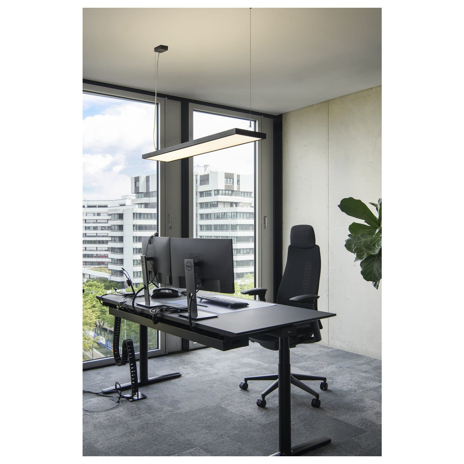 La gamme WORKLIGHT répond à toutes les exigences d'un éclairage moderne du poste de travail avec des lampadaires et des suspensions. Les luminaires sont équipés de la technologie LED la plus moderne très efficace et puissante. Bien entendu ceux-ci ont une valeur UGR ≤ 19. Équipés avec un capteur de mouvements, d'une commande de lumière du jour intégrée et de la variation de l'intensité lumineuse, ils répondent à toutes les exigences de l'éclairage de bureau actuel. Grâce au driver déjà intégré ainsi que l'alimentation et la fiche, le WORKLIGHT est prêt à être raccordé directement à la tension secteur de 230 V. Ce luminaire contient des ampoules LED intégrées.
