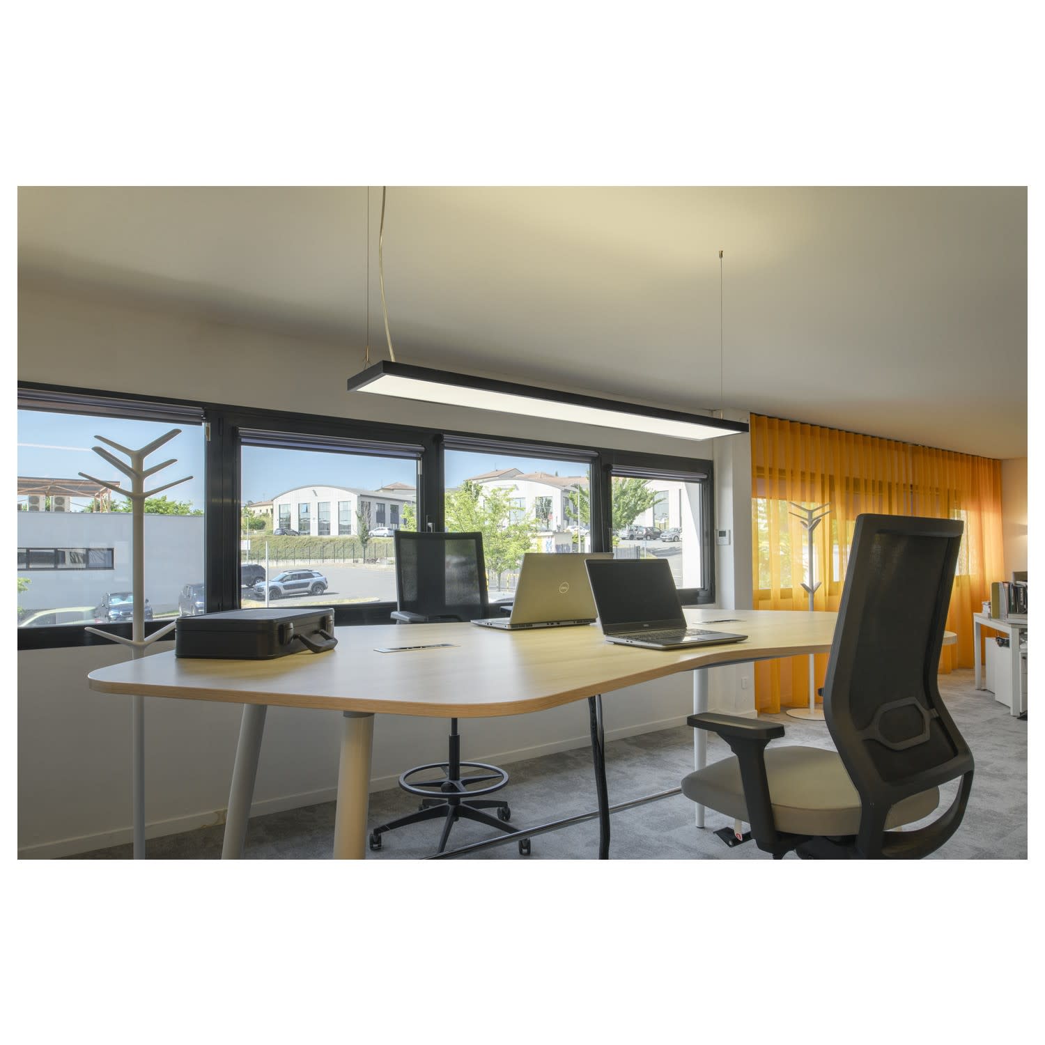 La gamme WORKLIGHT répond à toutes les exigences d'un éclairage moderne du poste de travail avec des lampadaires et des suspensions. Les luminaires sont équipés de la technologie LED la plus moderne très efficace et puissante. Bien entendu ceux-ci ont une valeur UGR ≤ 19. Équipés avec un capteur de mouvements, d'une commande de lumière du jour intégrée et de la variation de l'intensité lumineuse, ils répondent à toutes les exigences de l'éclairage de bureau actuel. Grâce au driver déjà intégré ainsi que l'alimentation et la fiche, le WORKLIGHT est prêt à être raccordé directement à la tension secteur de 230 V. Ce luminaire contient des ampoules LED intégrées.