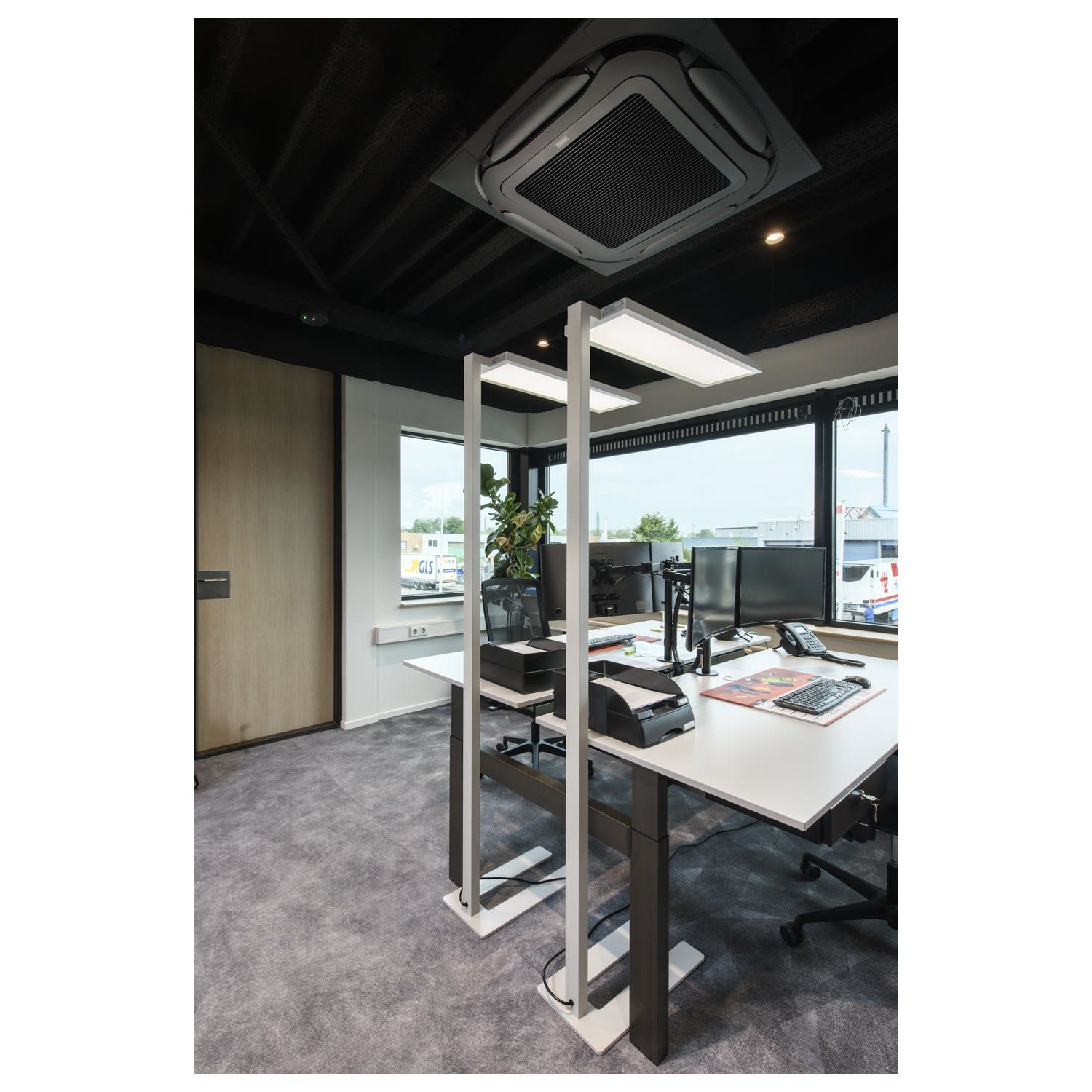 La gamme WORKLIGHT répond à toutes les exigences d'un éclairage moderne du poste de travail avec des lampadaires et des suspensions. Les luminaires sont équipés de la technologie LED la plus moderne très efficace et puissante. Bien entendu ceux-ci ont une valeur UGR ≤ 19. Équipés avec un capteur de mouvements, d'une commande de lumière du jour intégrée et de la variation de l'intensité lumineuse, ils répondent à toutes les exigences de l'éclairage de bureau actuel. Grâce au driver déjà intégré ainsi que l'alimentation et la fiche, le WORKLIGHT est prêt à être raccordé directement à la tension secteur de 230 V. Ce luminaire contient des ampoules LED intégrées.