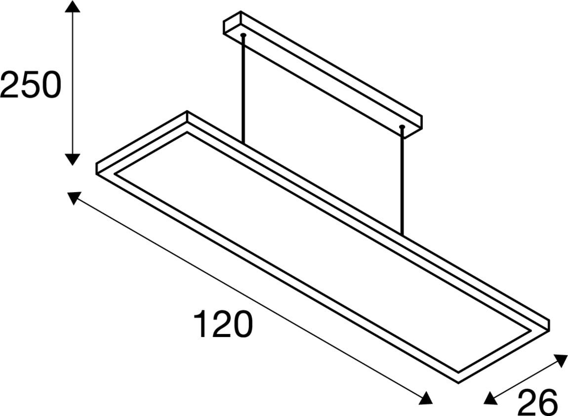 Intérieur suspensions avec corps lumineux LED fixe. Matériau principal: Aluminium, Couleur: argent, Dimmable: DALI, Form: carré, Puissance assignée: 57 W, Flux lumineux assigné: 5000 lm, Température de couleur (CCT): 4000K, Indice général de rendu des couleurs (IRC) Ra: 80, Maintien du flux lumineux: L80B10 ≥ 50000 h, Classe de protection (EN 61140): I, Indice de protection (DIN EN 60529): IP20, donc Protection contre les corps étrangers solides d'un diamètre > 12,5 mm, Degré de résistance aux chocs selon IEC 62262: IK02, Tension d'alimentation: 220-240V ~50/60 Hz, Dimension (L/W/H): ( 120 / 26 / 3 cm ), Poids: 5.656 kg. Le produit répond aux exigences essentielles des directives européennes applicables et de la loi sur la sécurité des produits et porte le marquage CE.SLV Référence 1006345 / EAN 4024163264211