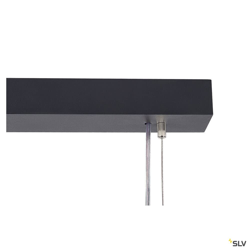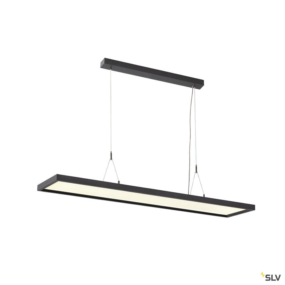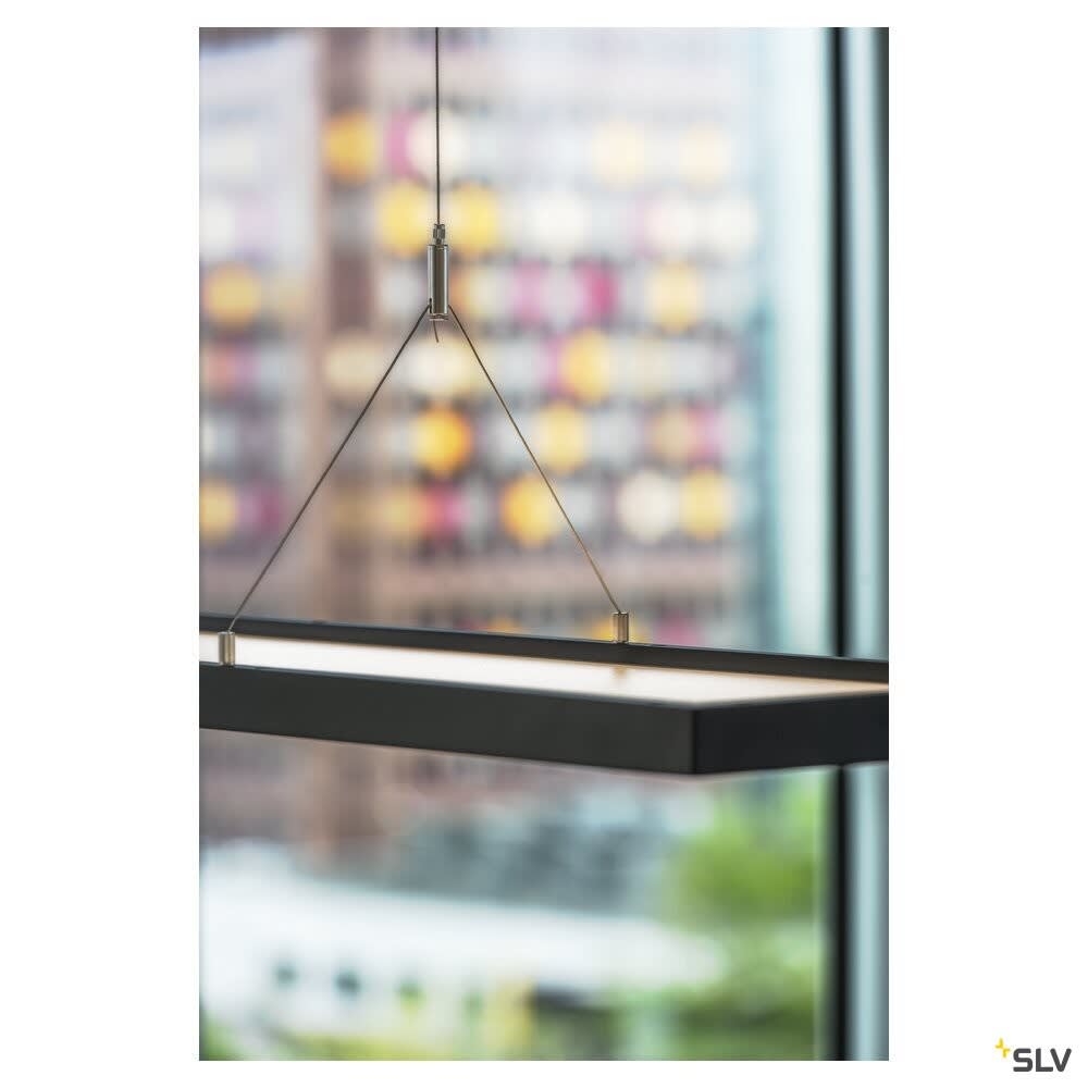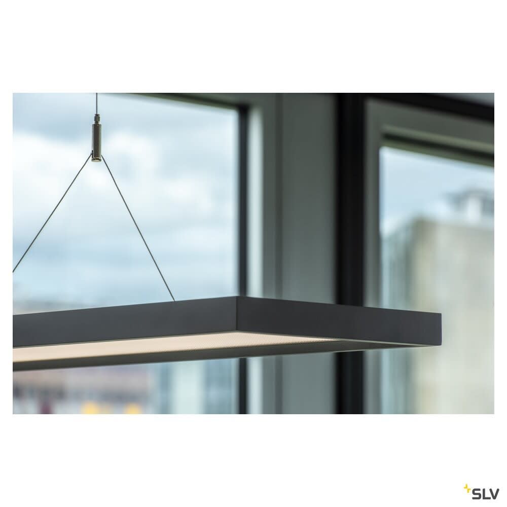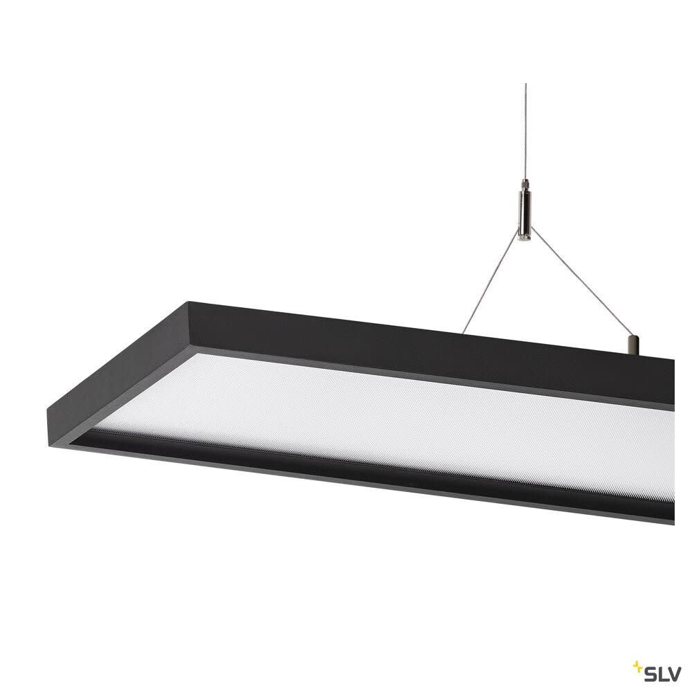 Intérieur suspensions avec corps lumineux LED fixe. Matériau principal: Aluminium, Couleur: noir, Dimmable: DALI, Form: rectangulaire, Puissance assignée: 57 W, Flux lumineux assigné: 5000 lm, Température de couleur (CCT): 4000K, Indice général de rendu des couleurs (IRC) Ra: 80, Maintien du flux lumineux: L80B10 ≥ 50000 h, Classe de protection (EN 61140): I, Indice de protection (DIN EN 60529): IP20, Degré de résistance aux chocs selon IEC 62262: IK02, Tension d'alimentation: 220-240V ~50/60 Hz, Dimension (L/W/H): ( 120 / 26 / 3 cm ), Poids: 5.562 kg. Le produit répond aux exigences essentielles des directives européennes applicables et de la loi sur la sécurité des produits et porte le marquage CE.SLV Référence 1005395 / EAN 4024163254595