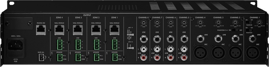 Amplificateur Public adress, 4 x 120 W, 100 V, mixeur, 4 zones, matriciel, classe D