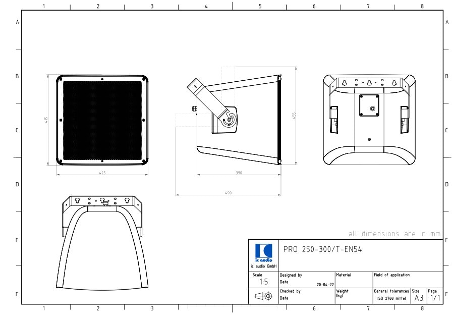 Sodel - Enceinte longue portée, 100 V, 250 W, IP66, EN54, noire - IC-PRO-250-300/T-P-B-EN54