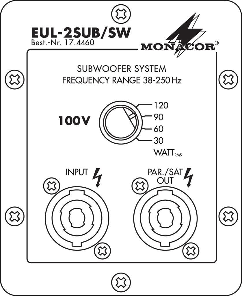 Cette série d'enceintes, y compris les subwoofers, de MONACOR, sert de référence en sonorisation moderne : ébénisteries de grande qualité, laquées, design parfait, légères, stables, puissantes, avec une bonne sonorité et un bon rendement : telles sont les EUL-2... en sono ligne 10 V. De vraies enceintes professionnelles, particulièrement intéressantes de par leur utilisation et leur prix. Subwoofer ligne 100 V