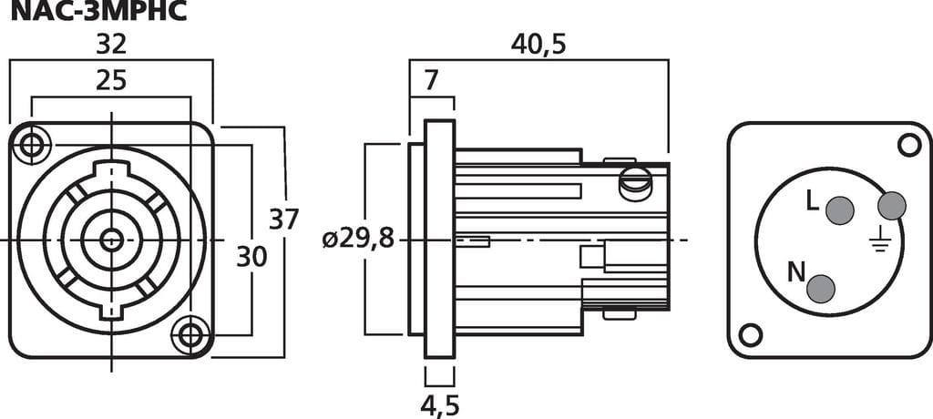 Fiche POWERCON, châssis femelle - NEUTRIK