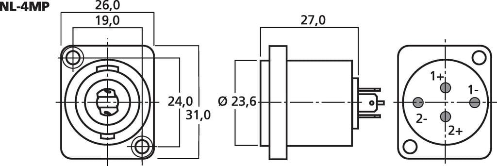 Sodel - Fiche SPEAKON femelle châssis - NEUTRIK - NL-4MP