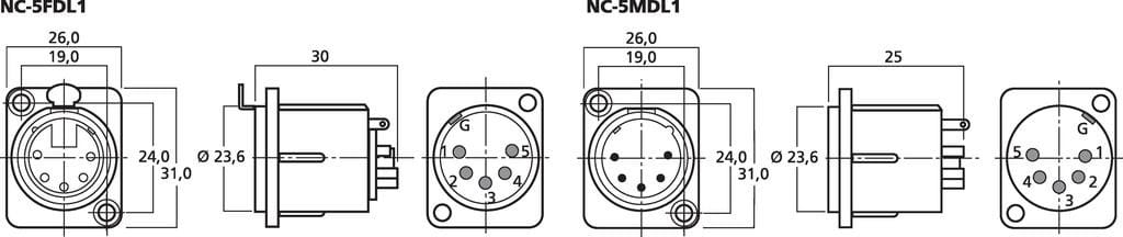 Sodel - Fiche XLR mâle, châssis, 5 pôles - NEUTRIK - NC-5MDL1