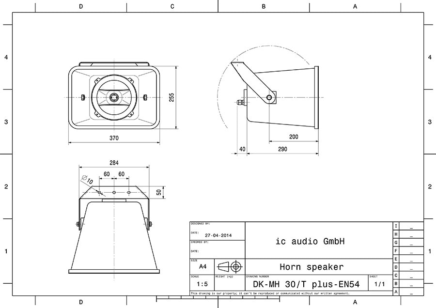 Sodel - Haut-parleur compression 100 V, 30 W, IP66, EN54 pavillon musique - IC-DK-MH-30/T-P-EN54