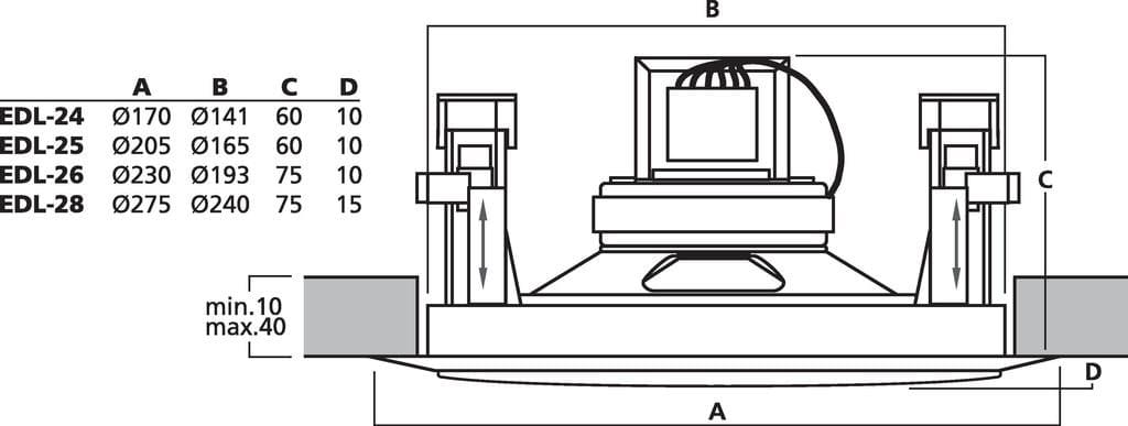 - Pour plafonds d'épaisseur 10-40 mm