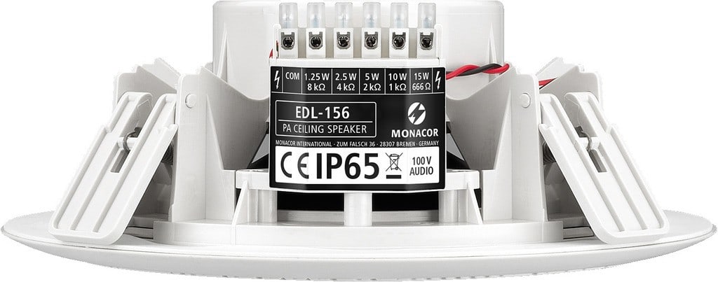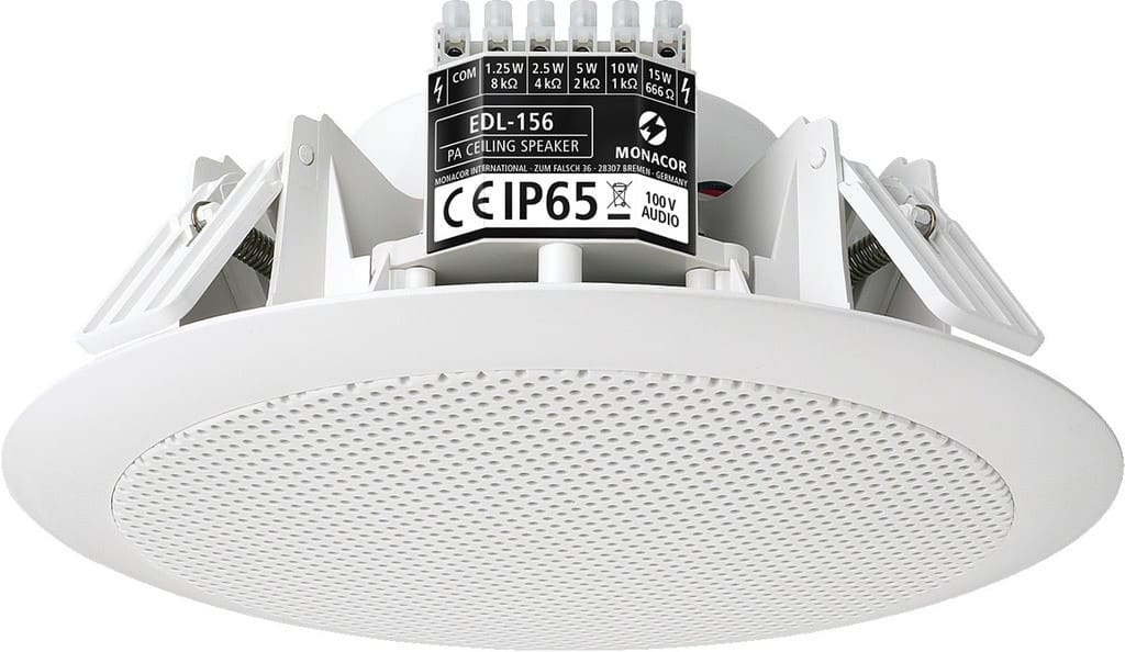 Haut-parleur PA pour plafond, résistant aux intempéries, et à des températures jusqu'à 100°C. Pour des installations dans des saunas ou piscines.