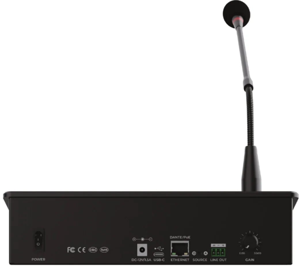 Écran tactile Dante® 7 pouces alimenté par PoE / 12 V avec microphone à col de cygne. À utiliser avec les matrices DA-MDM-A et DA-MDM-DUne interface graphique personnalisée pouvant être adaptée aux besoins de l'utilisateur peut être utilisée avec cette console. Le logiciel GUI Editor est facile à utiliser et est fourni avec les matrices.