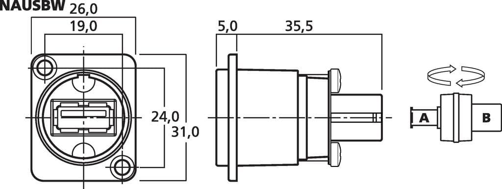 Sodel - Prise châssis USB - NEUTRIK - NAUSBW