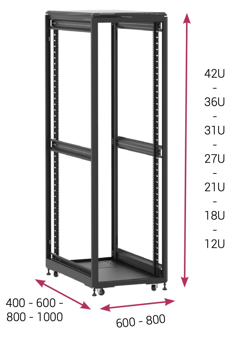 Sodel - Rack pour appareil 19", 21 U, noir, à poser au sol, porte en verre - SOC-RACK-21N