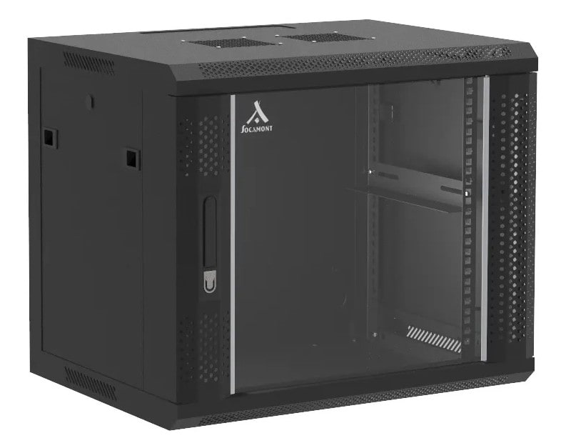 Sodel - Rack pour appareil 19", 9 U, noir, fixation murale, porte en verre - SOC-RACK-9WN
