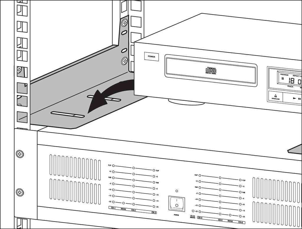 Paire de rails de fixation pour le montage d'appareils non rackables (composants Hi-Fi par exemple), dans RACK-42NV, RACK-33NV, RACK-21NV ou RACK-15NV