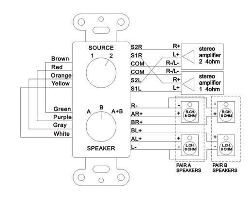 Le sélecteur d'entrée/de haut-parleurs mural, PDWS3, propose un moyen pratique de désigner deux ensembles de haut-parleurs dans n'importe quelle combinaison (uniquement A, uniquement B ou A et B en même temps). Ce commutateur permet de commuter facilement entre deux sources audio différentes, puis de diriger ce son vers l’ensemble de haut-parleurs reliés. L’ensemble comprend également le matériel de montage, y compris un boîtier de fixation murale universel, pour une installation facilitée.